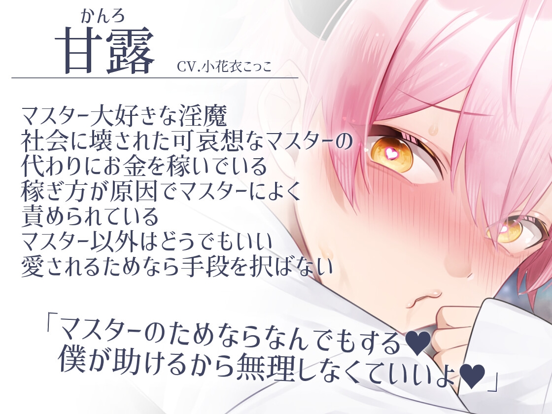 なんにもできないあなたがだぁいすきな淫魔の甘露くんはどろどろにあなたを甘やかして、あなたの為にウリをして、怒らせて、お仕置きさせて、尽くして、愛して、優しくあなたをダメにして破滅させてくれます
