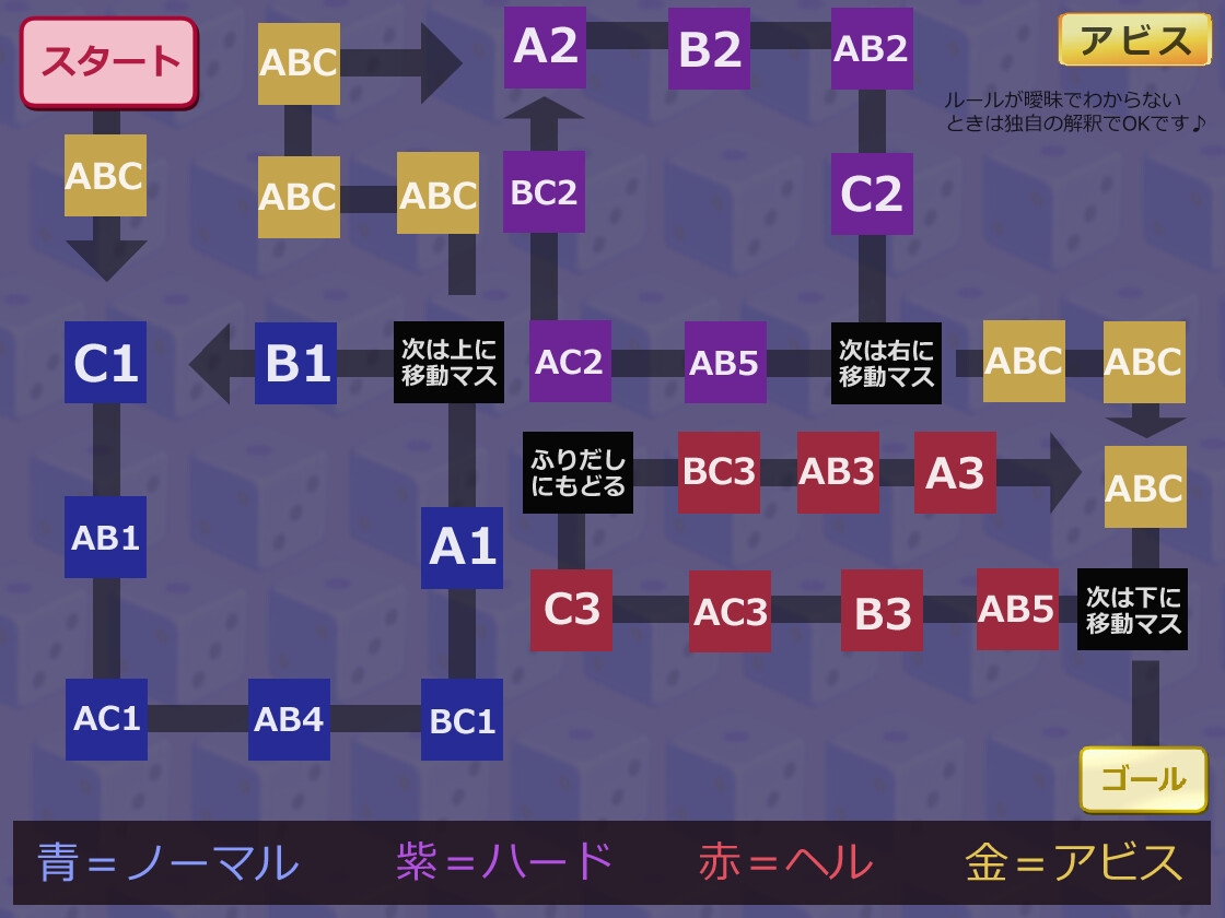 マスの種類・・・青(少し辛い)紫(辛い)赤(超辛い)金(阿鼻叫喚)