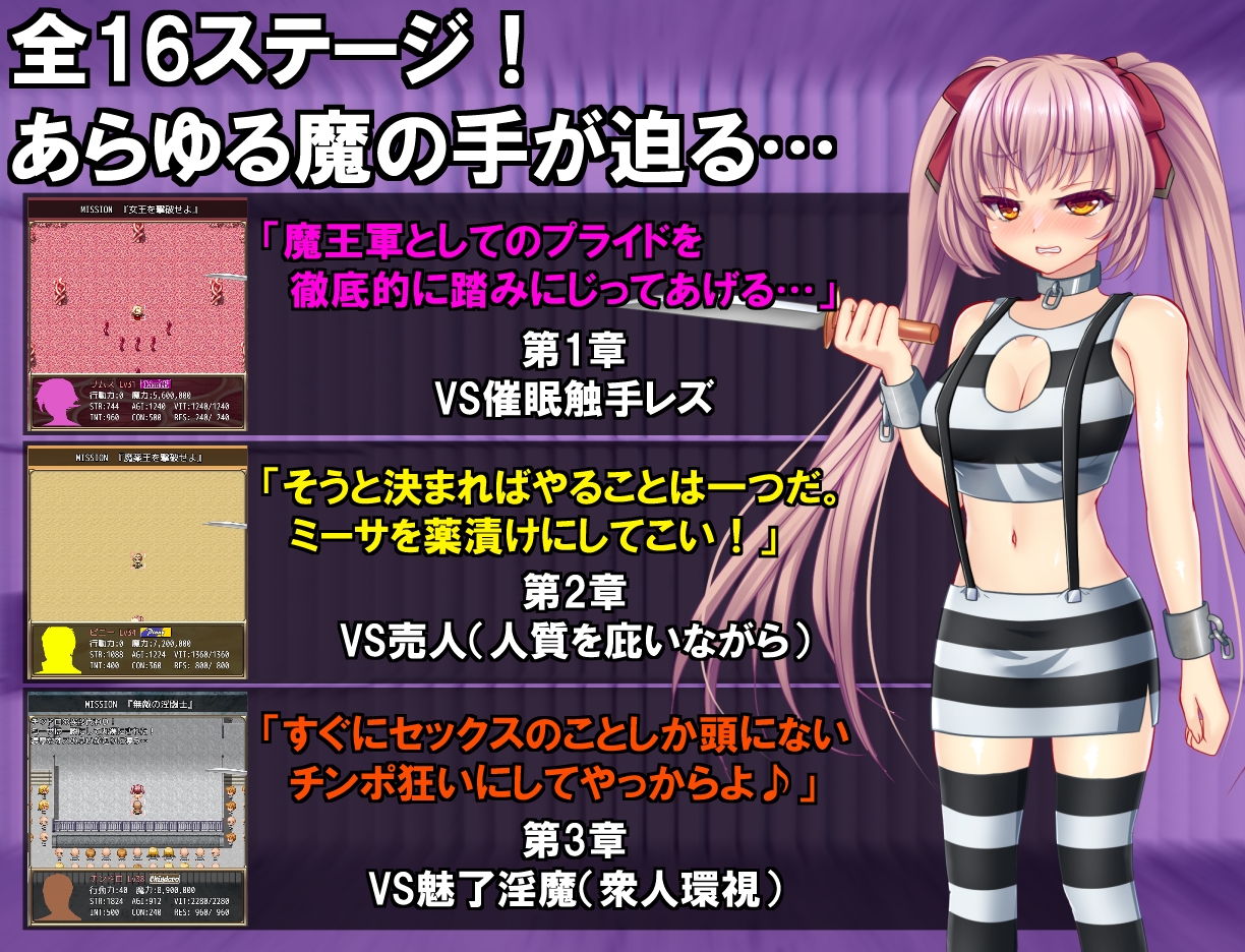 魔王軍最強の戦士『ミーサ』は、ただひとり淫魔たちが犇めく監獄に潜入する。