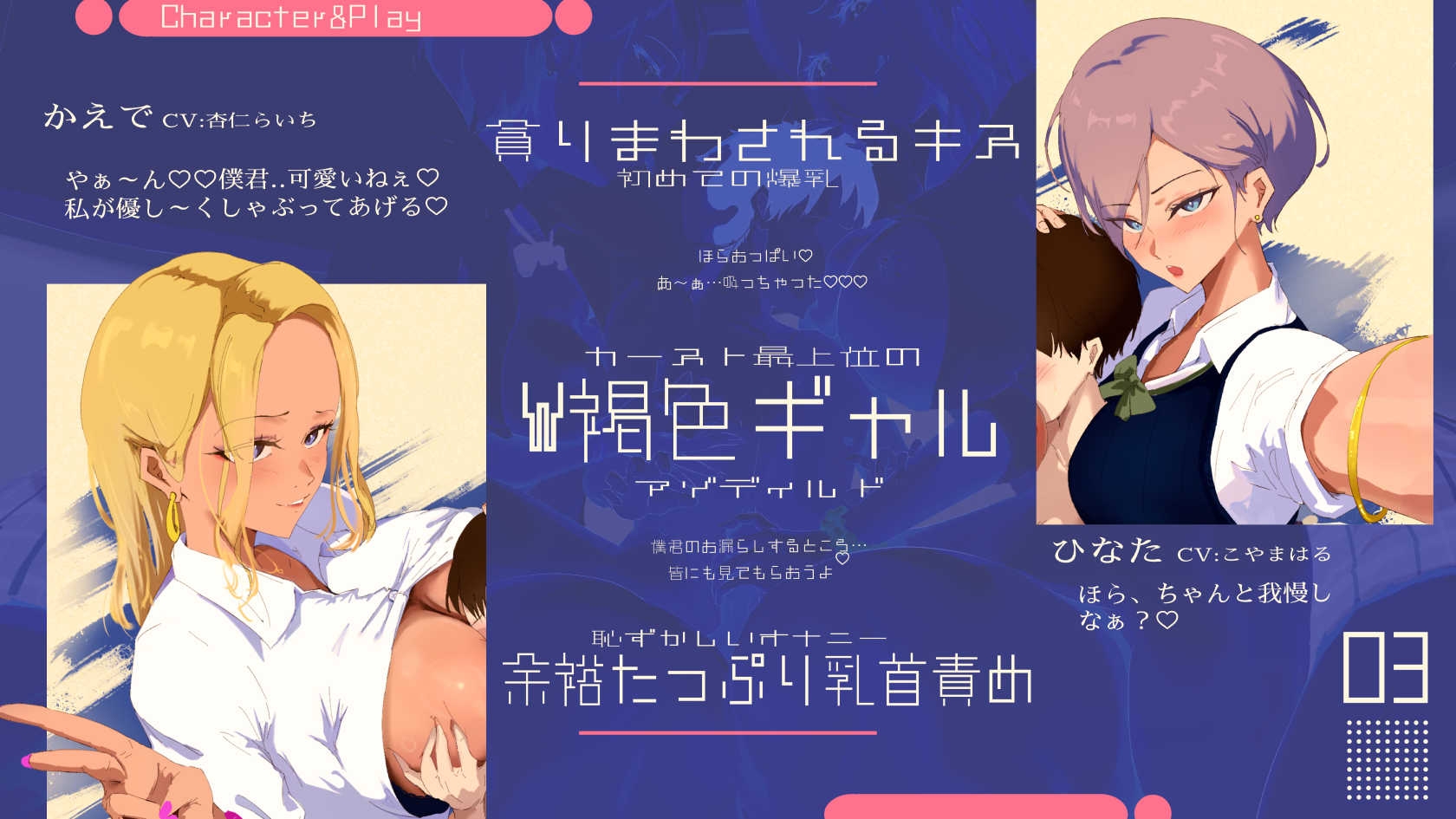 | タグ | おっぱい ギャル おねショタ 手コキ 逆レ 耳舐め 乳首責め 褐色/日焼け |