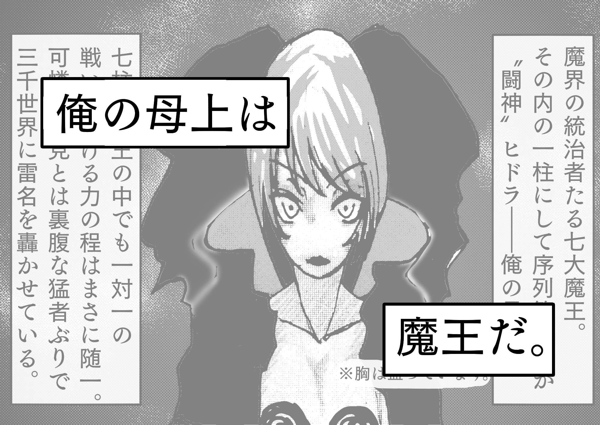 「俺」の母は魔界にその名を轟かす七大魔王の一人、ヒドラ。ヒドラには、異界からの侵略者に敗れて捕らえられ、孕まされてしまったという苦い過去があった。その際、自身への戒めも込めて、堕胎せずに産み落としたのが「俺」こと魔界の王子である。
