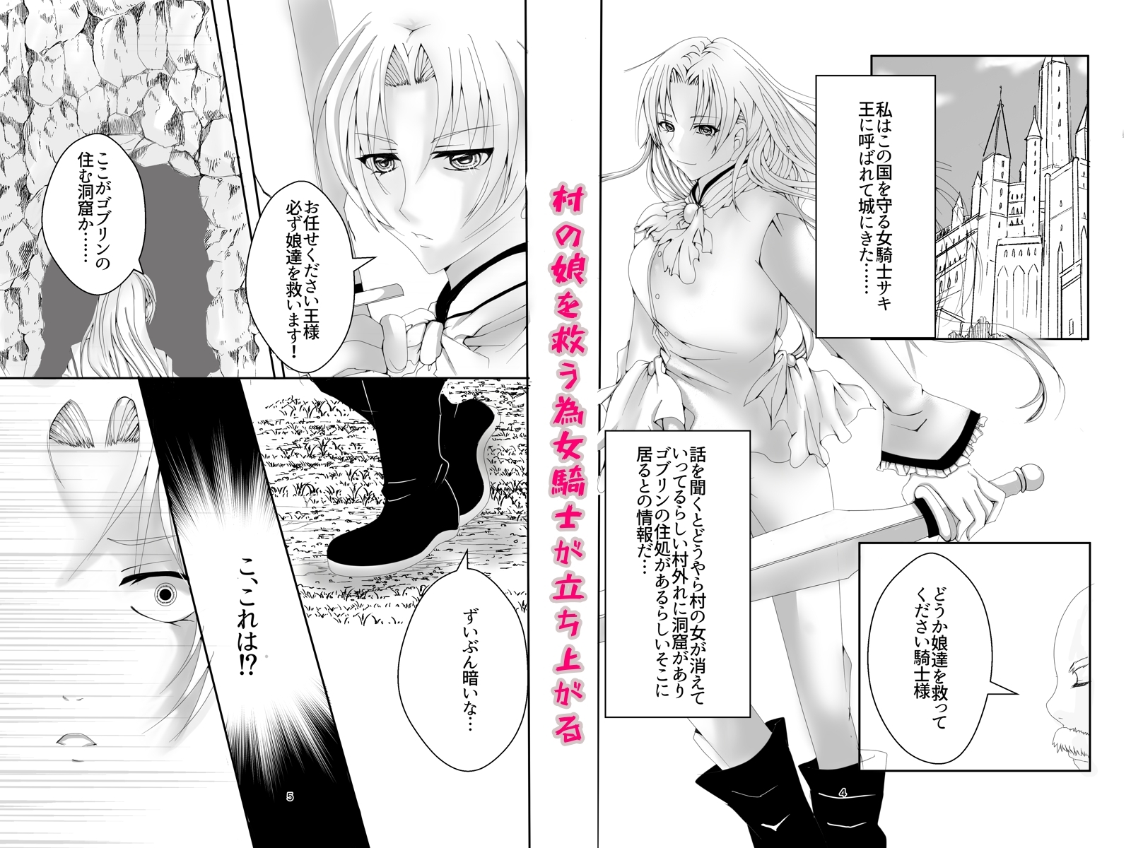 女剣士として闘う「サキ」は、村の娘達を救う為、ゴブリンの住む洞窟に行くことになる、そこで村の娘達は、ゴブリンに犯されていたその場で戦おうとするも、囲まれて逃げる。しかし、ゴブリンに捕まってしまい無理矢理犯されてしまうのだった……
