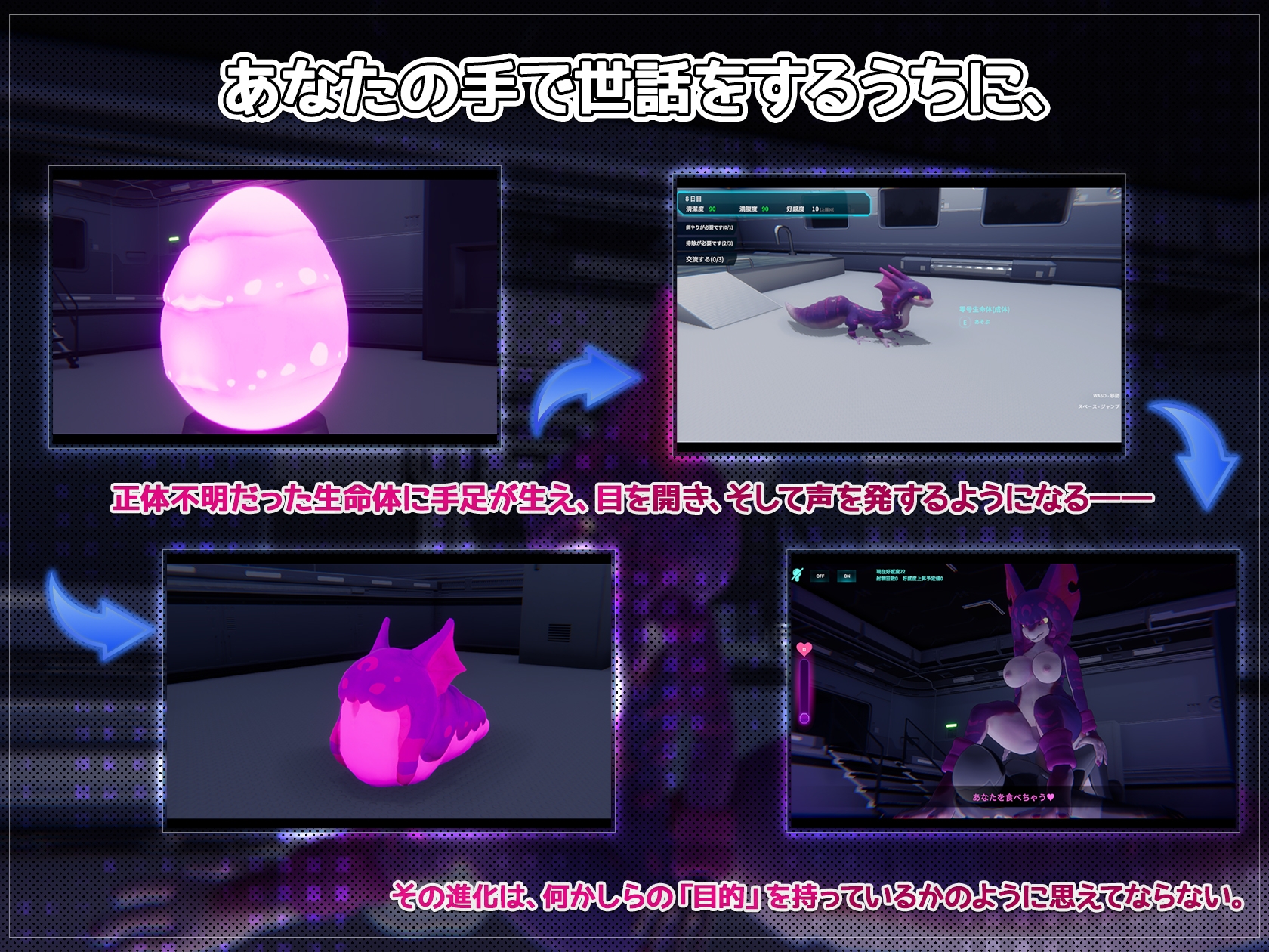 未知の生物を育てよう! 異星の守宮「零号生命体」を育成するペット育成ゲームです。 プレイヤーはエージェンシーが提供する特別なスペースを活用し、可愛くて不思議な生命体をお世話して成長させていきます。そして…いろんなエッチや予想外のことも!?