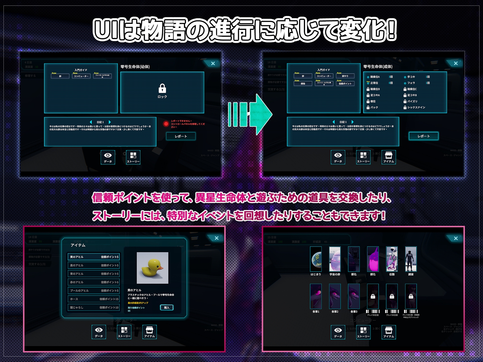 本作は「異星の守宮・零号生命体」を育成するシミュレーションゲーム。