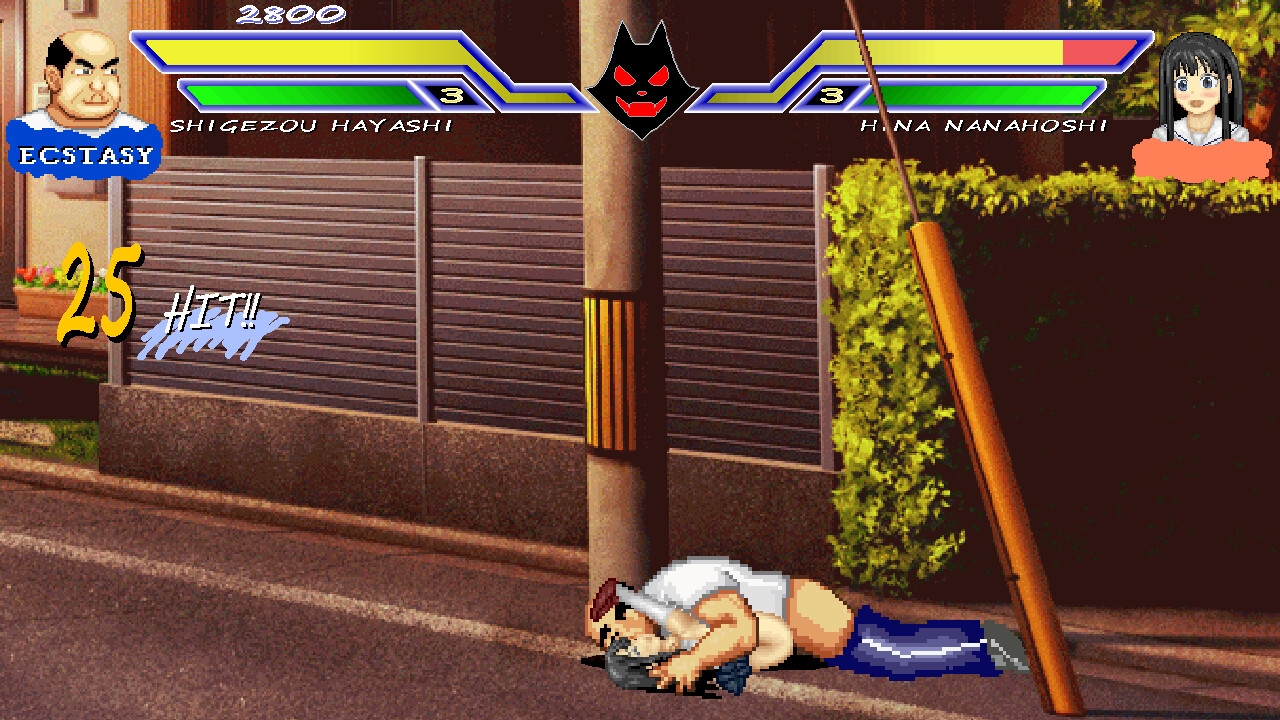 작품의개요는변태남자들이로소녀들에게성희롱기술을짓거나범하거나하는게임입니다만각소녀캐릭터마다고유의필살기,초필살기가있어보통의격투게임으로서도즐길수있습니다.