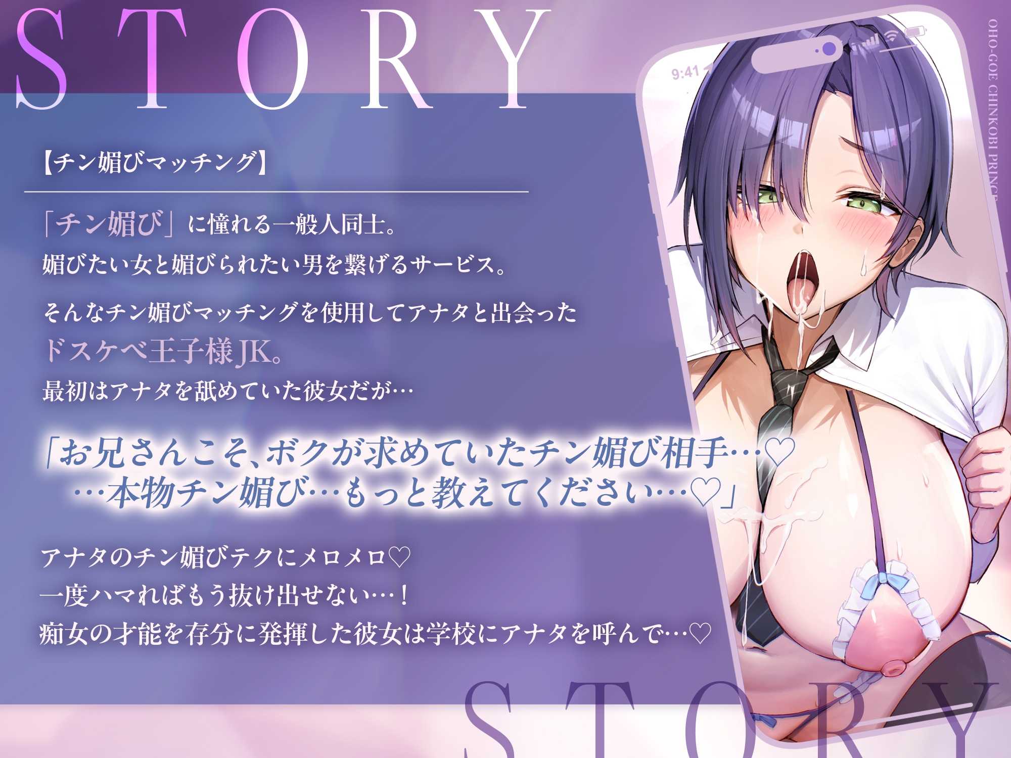 チン媚びマッチングで出会ったドスケベ王子様JK。最初はアナタの事を舐めていた彼女だが、年上ドSなアナタが教え込む『本物』のチン媚びにメロメロ♪ 「あ…ああ…コレが…本物のチン媚び…」痴女の才能を存分に発揮する現役JKの本格チン媚びをお楽しみください♪