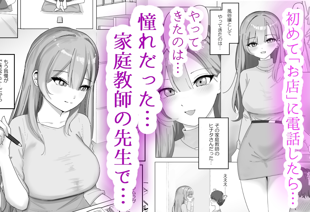 オトナになった僕は、初めて「お店」に電話して女の人を呼んだ。しかしやってきたのは、僕が憧れていた家庭教師のお姉さん、ヒナタさんその人だった…。そして僕は、ヒナタさんの口から、過去の接客の数々を聞くことになる。それはつまり、いままでヒナタさんの身体に癒されてきた他の男の体験談だ。硬くなったチ○ポを手でしごいてもらいながら、耳元で他の客とのプレイが囁かれるのを、僕はどうしても拒めなかった…。