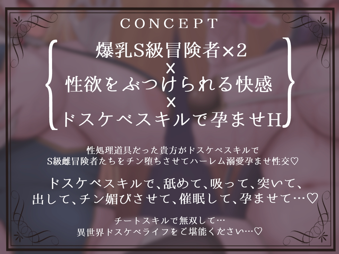 ドスケベスキルでE級の貴方がS級爆乳冒険者×2を孕ませるハーレム異世界ライフをお楽しみください。