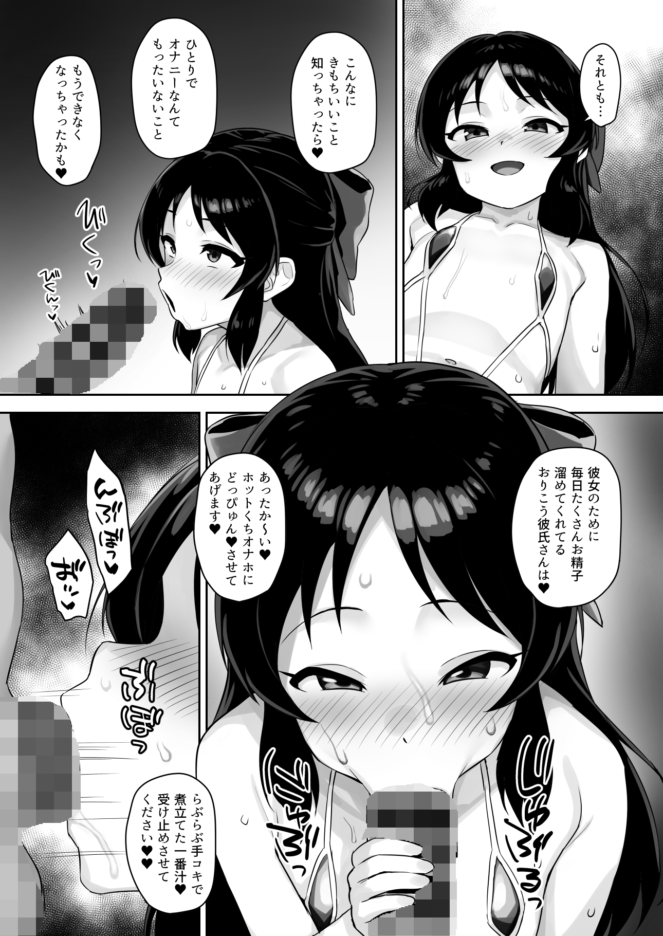 Pさんのち◯ぽを元気にさせるのがとても得意で、Pさんのち◯ぽにアクメさせてもらうのが大好きな、ロ◯ドルあ◯すちゃんをいろんな極小水着で雌臭撒き散らす1冊となっています。