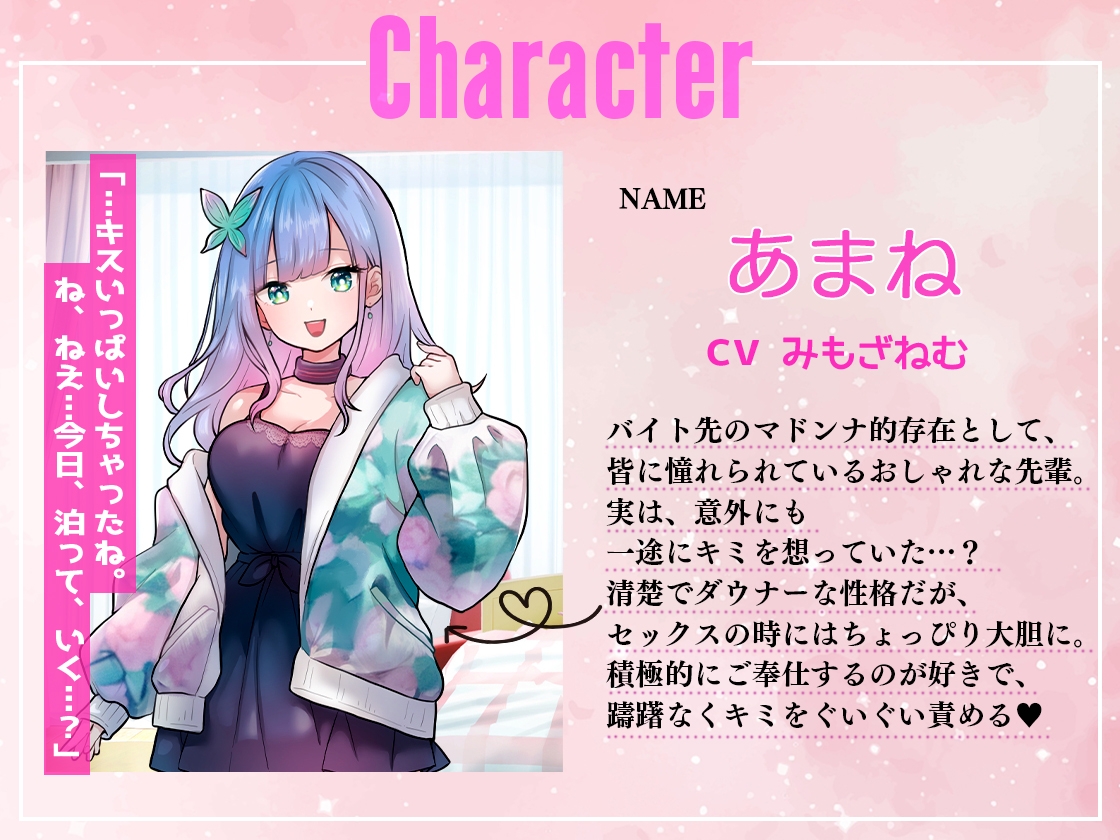 「お願い待って、帰らないで…っ!ちゅっ…ちゅっ…んむっ、」憧れの先輩の引越しの手伝いをした帰り、突然キスで引き止められてそのままお泊りすることに!シャワーを借りていると先輩が乱入しはじめパイズリ&フェラであまあまご奉仕、まさかの顔射懇願!?さらに雪崩れ込むようにベッドに移りキスや乳首舐め、クンニなどいちゃいちゃ触れあい続けていると性欲が我慢できなくなってきた先輩がついに騎乗位で挿入し腰振りをし始めて…?