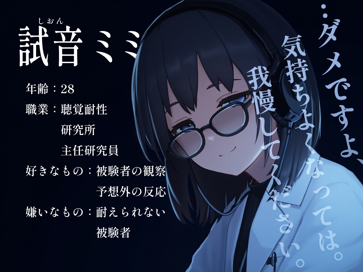 ・チャプター1(今日は君の耐久テスト/どこまで耐えれるかな?/目閉じて/声に集中/左右囁き2分/耳ふー1分/耳舐め軽く1分/まだ我慢できるよね?/耳舐め深く2分/ぞわぞわ?/じゃあ次はえっちな耐久ね)