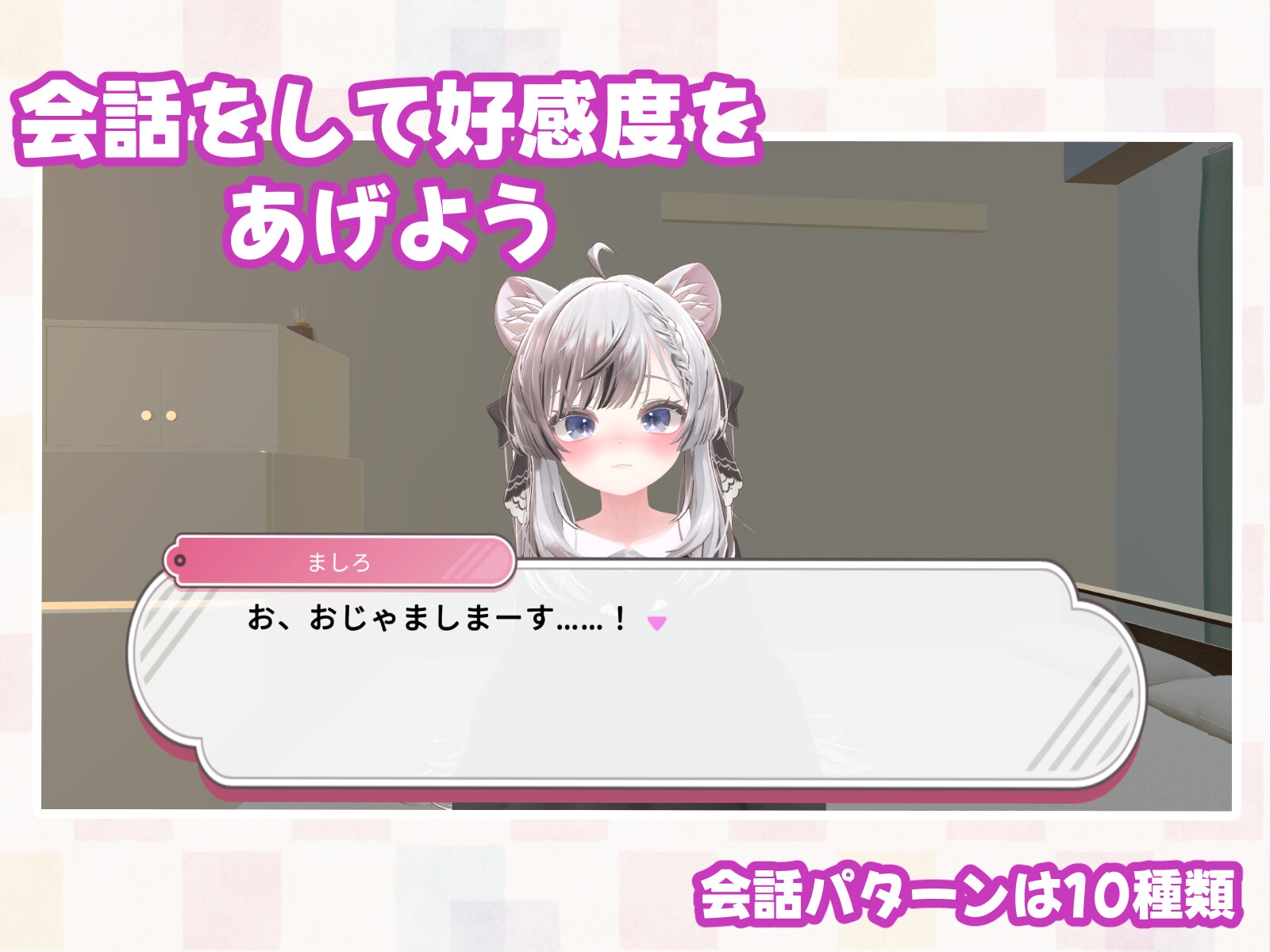 (1)会話によって好感度が上がるミニゲームを用意。