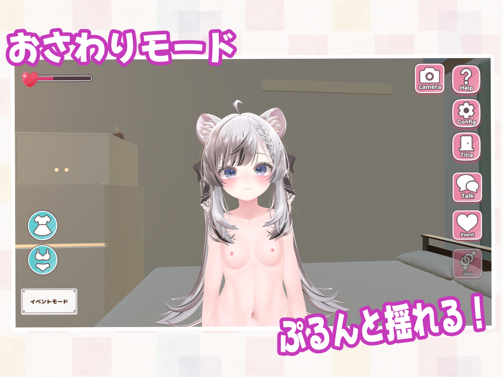 (2)イベントモードでは、「ケモ耳」を撫でたり、「胸」を揺らすこともできます。