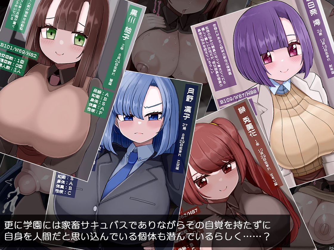 脱走の責任をとるため青年は「家畜捕獲管理委員」である「須藤咲葉」の仕事である、「未だ自分を人間だと信じて生きている家畜サキュバス達の調査」を手伝うのであった……