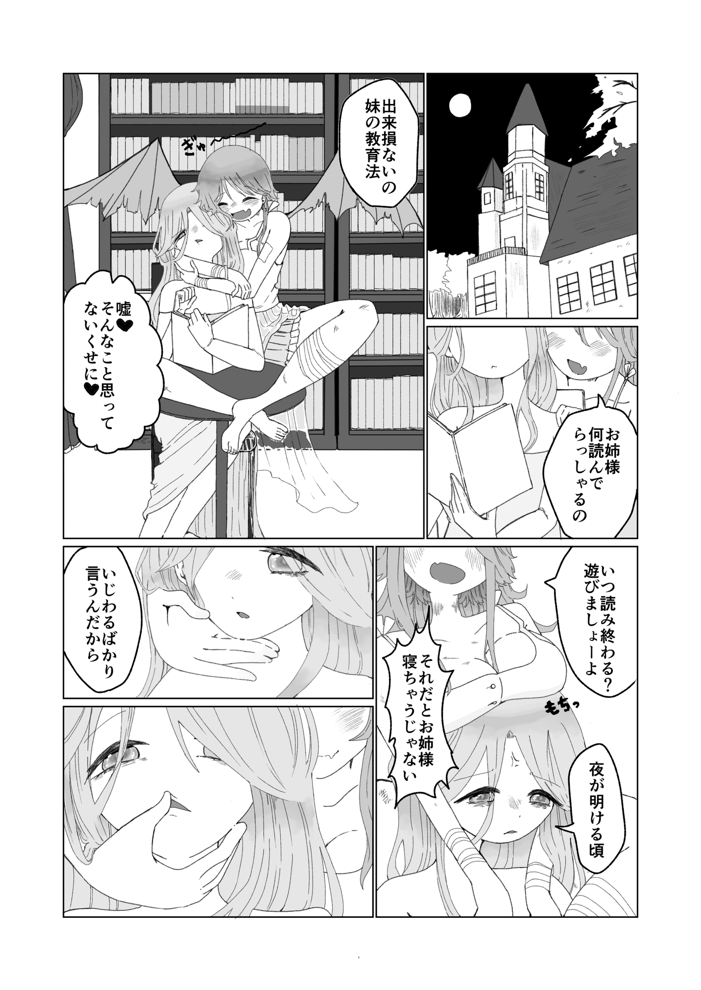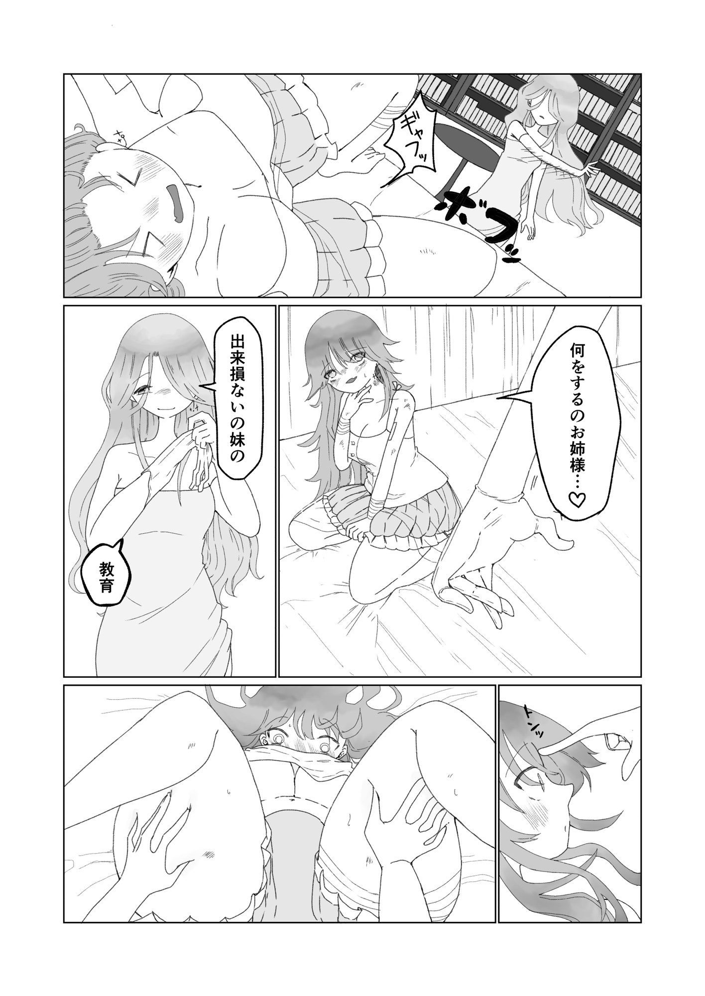 吸血鬼の妹が姉にいたずらしたことで始まる、お仕置きイチャイチャえっちの話です。