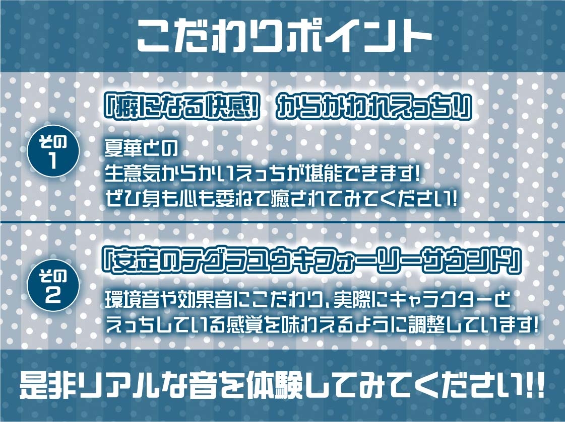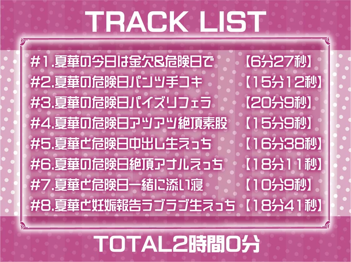 日中はお互い忙しいため 今日も夜に夏華に会ったあなた… 彼女は金欠らしくて お小遣いをあげると 喜ばれてえっちに誘われた! なんと相変わらず からかい好きな夏華は 今日は危険日だとのこと! 早速パンツ手コキに パイズリフェラに 素股を堪能! そしてついに中出しえっちをして アナルえっちもしてしまう! 後日夏華から妊娠報告を受けて…