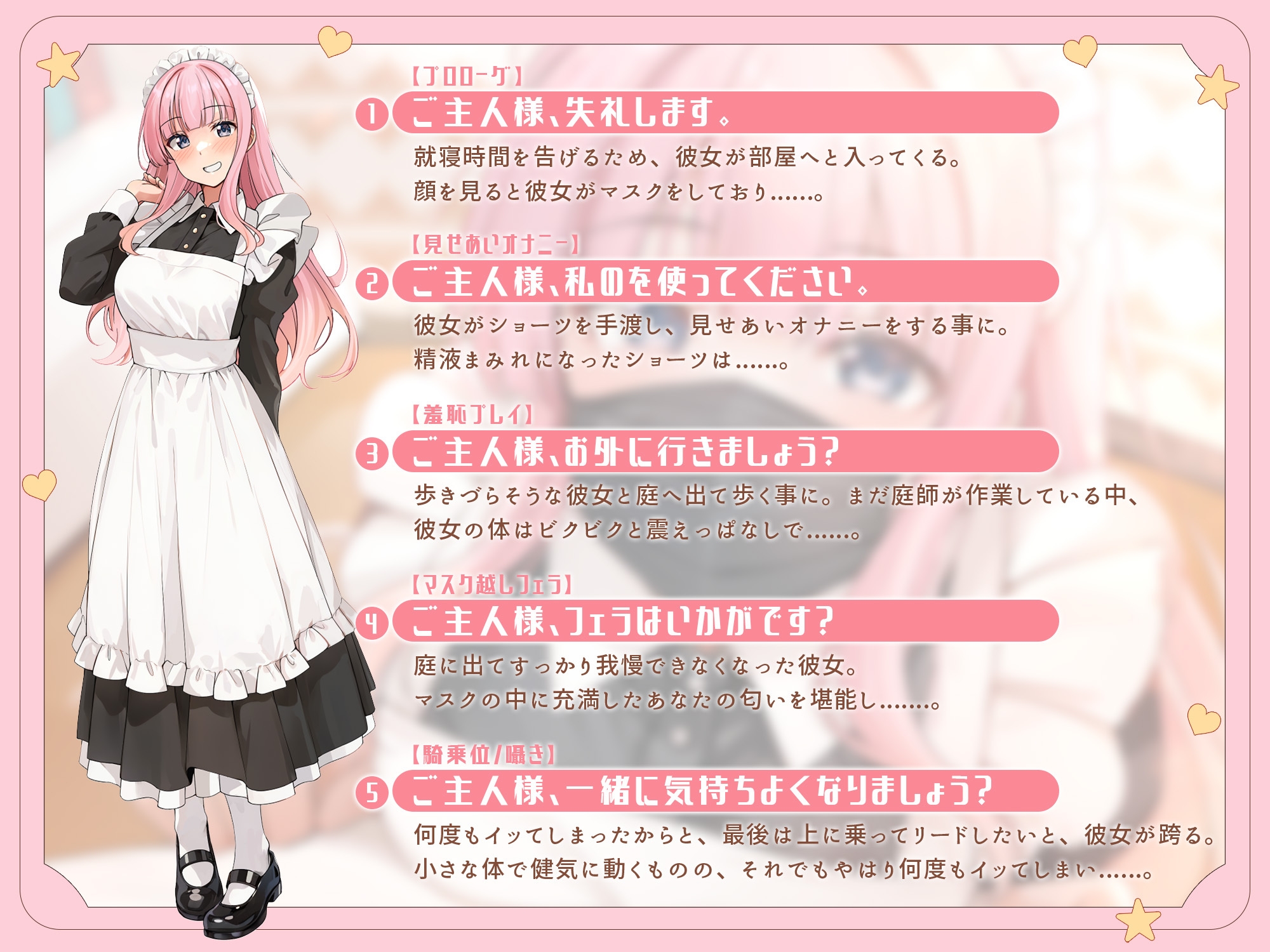 あなたに仕えるマスク姿のメイドさん、そんな彼女との妖艶な一夜をお楽しみください。