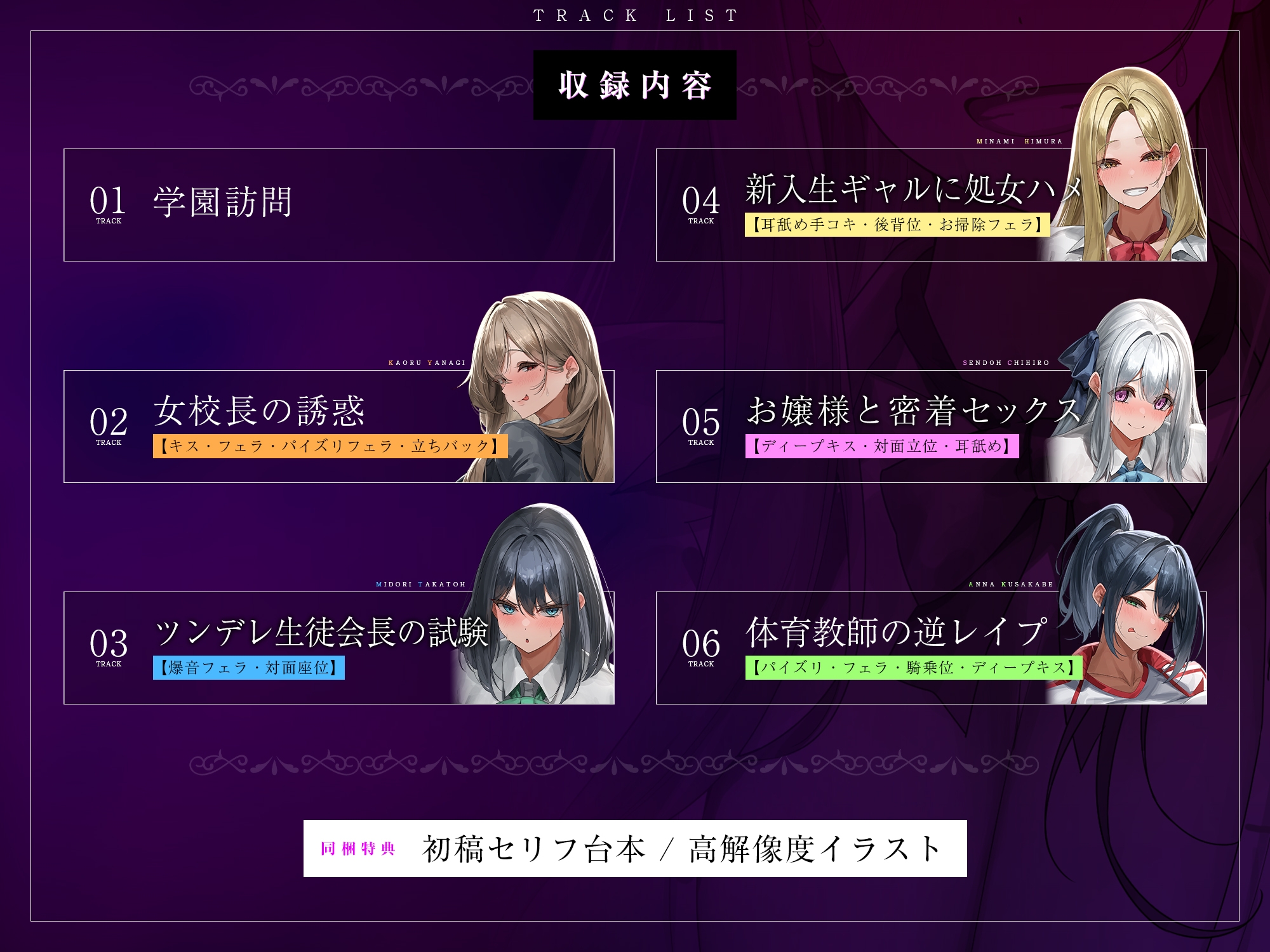 | タグ | バイノーラル/ダミヘ ASMR 学校/学園 ハーレム 中出し フェラチオ 淫乱 耳舐め |