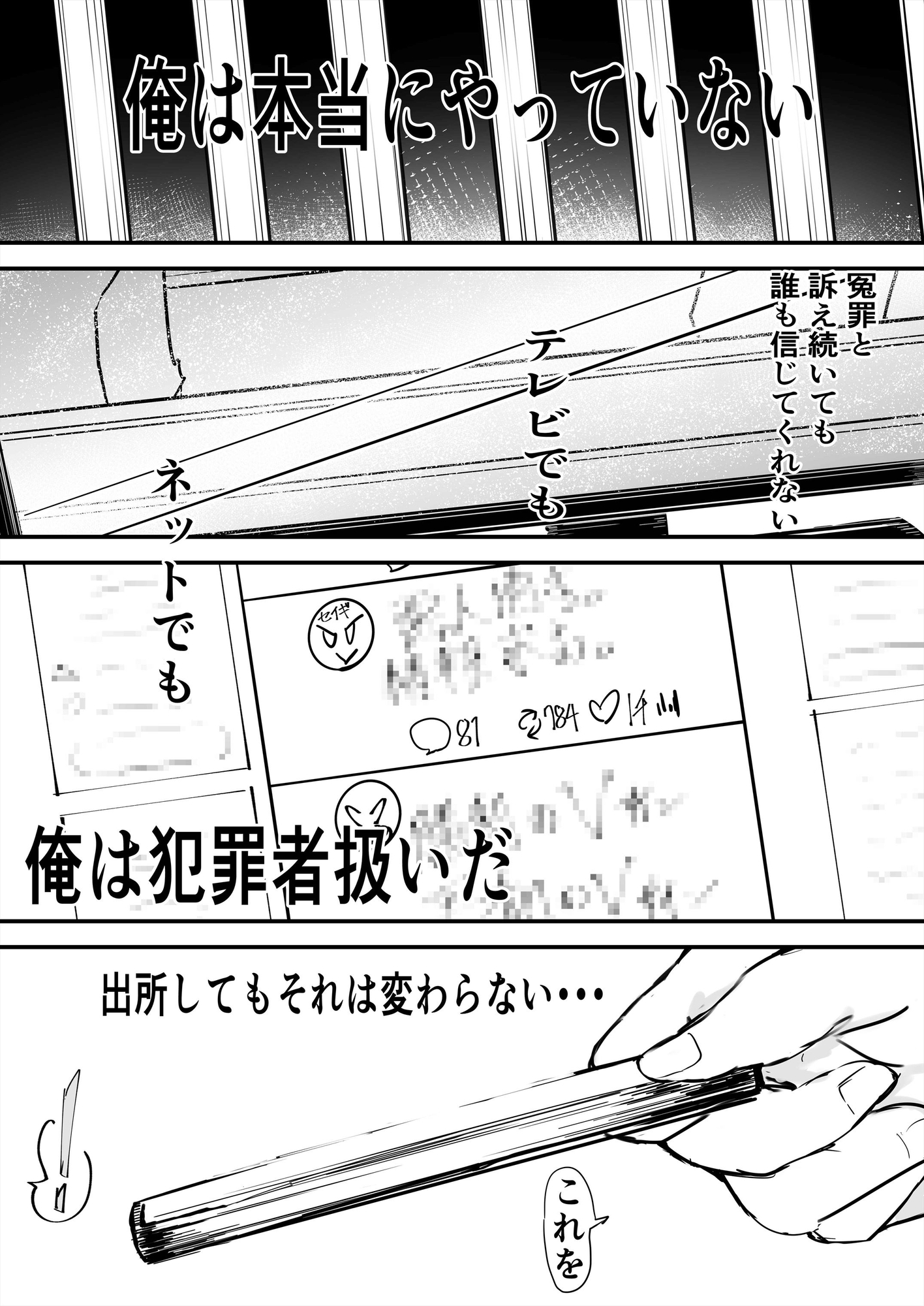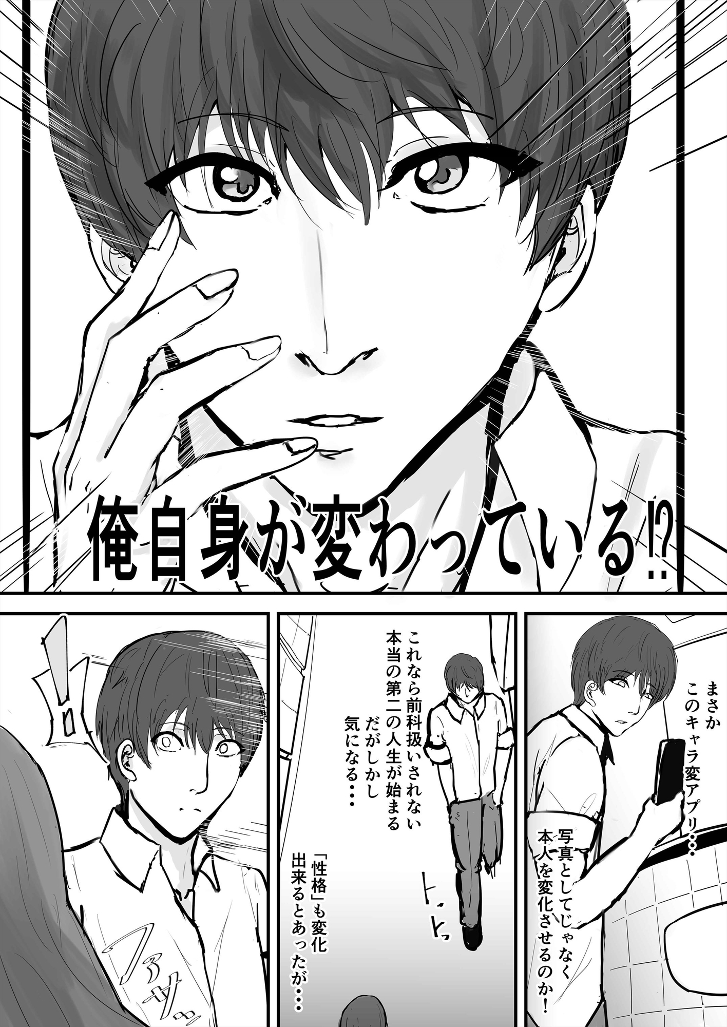 本編22ページ 冤罪によって捕まっていた主人公 その冤罪が晴れることなくそのまま出所すると謎のスマホを渡された そこにあったのは「キャラ変アプリ」 「容姿も性格もなんでも自由自在 思い通りの自分に大変身」という説明 興味本位で使用すると実際にそのアプリで容姿を変更できることがわかった これで犯罪者扱いされずに第二の人生を歩むことができる だが、すれ違う すれ違ってしまった 自分に前科を付けた女に・・・