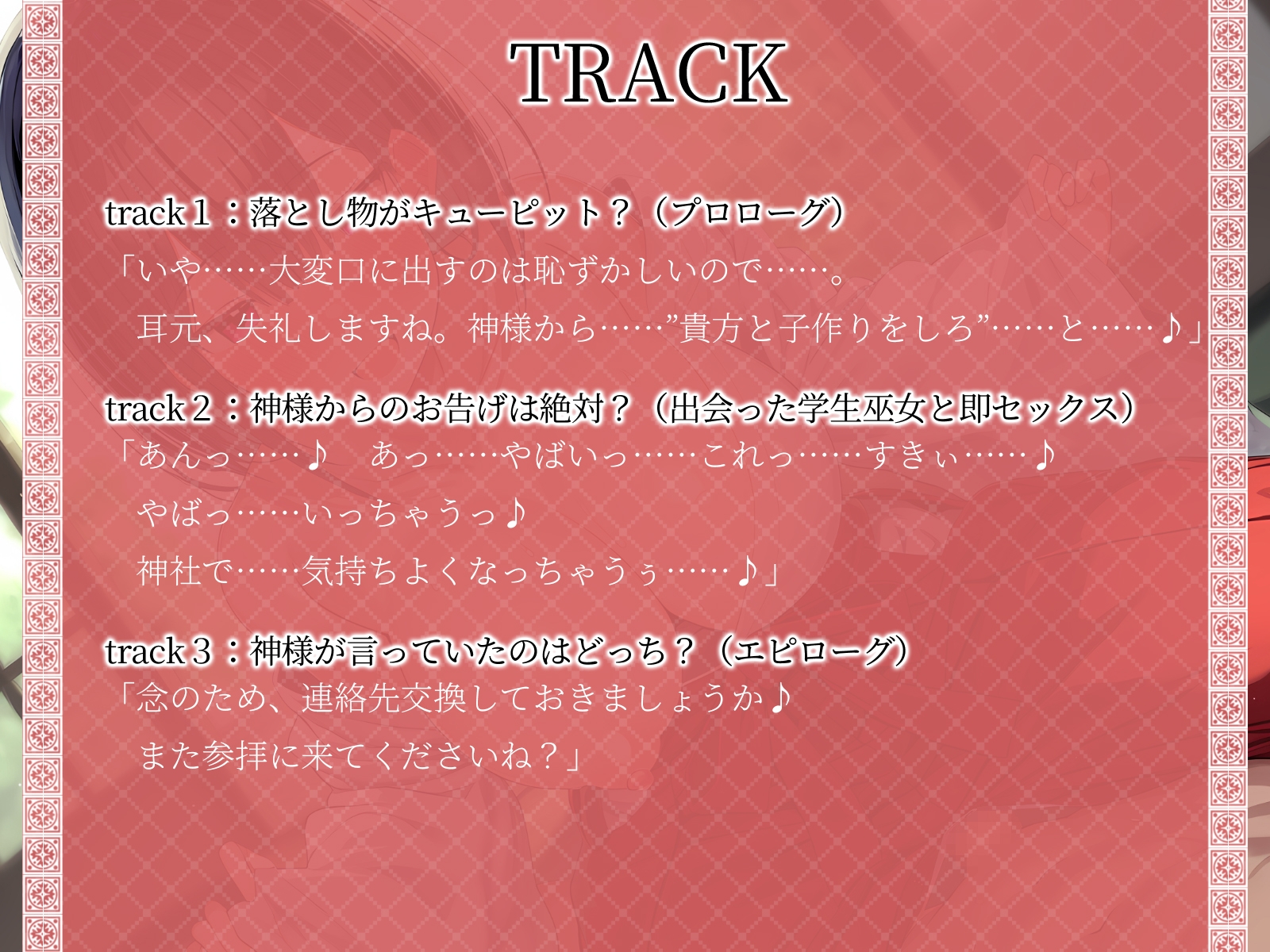 track2:神様からのお告げは絶対?(出会った学生巫女と即セックス)