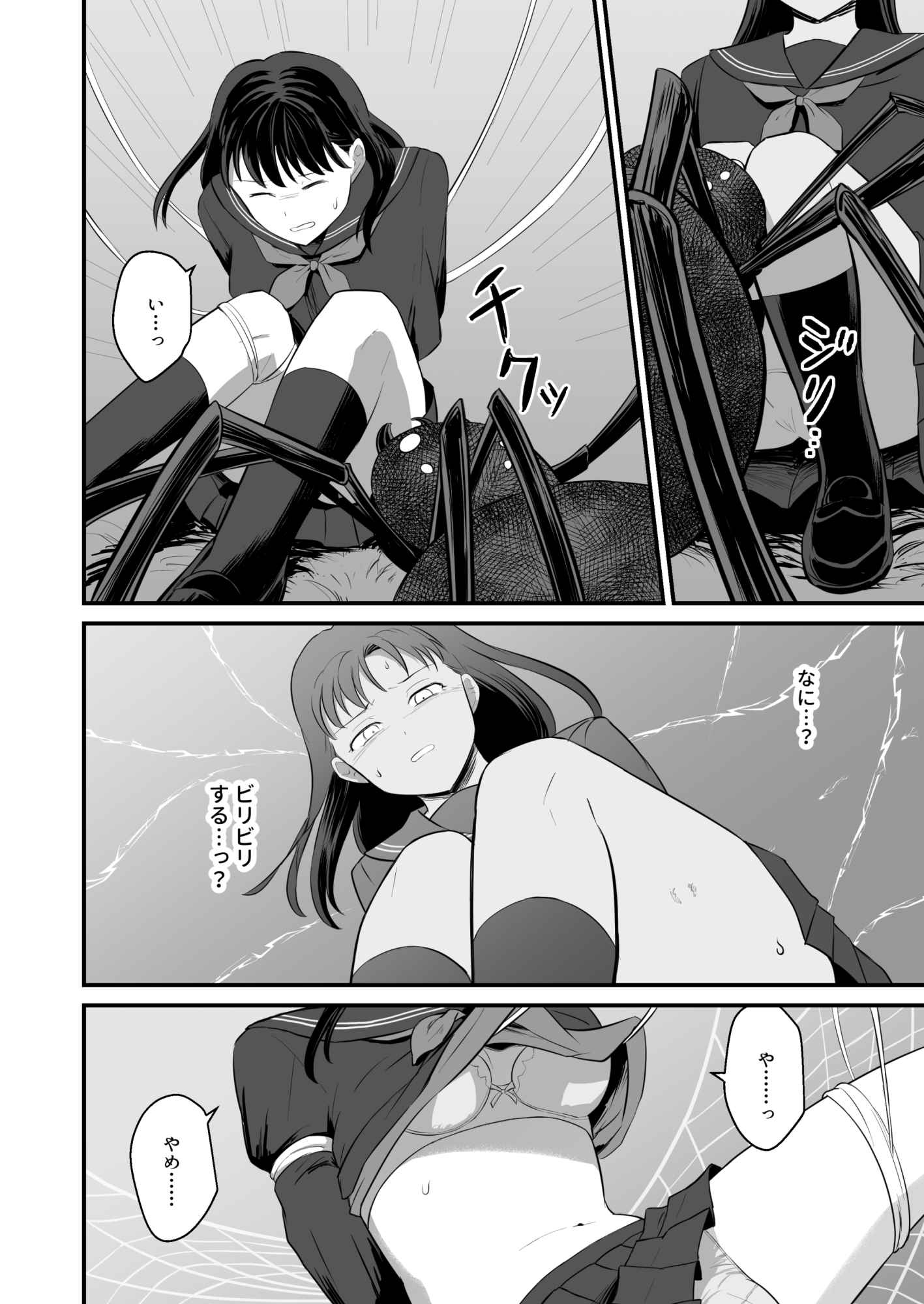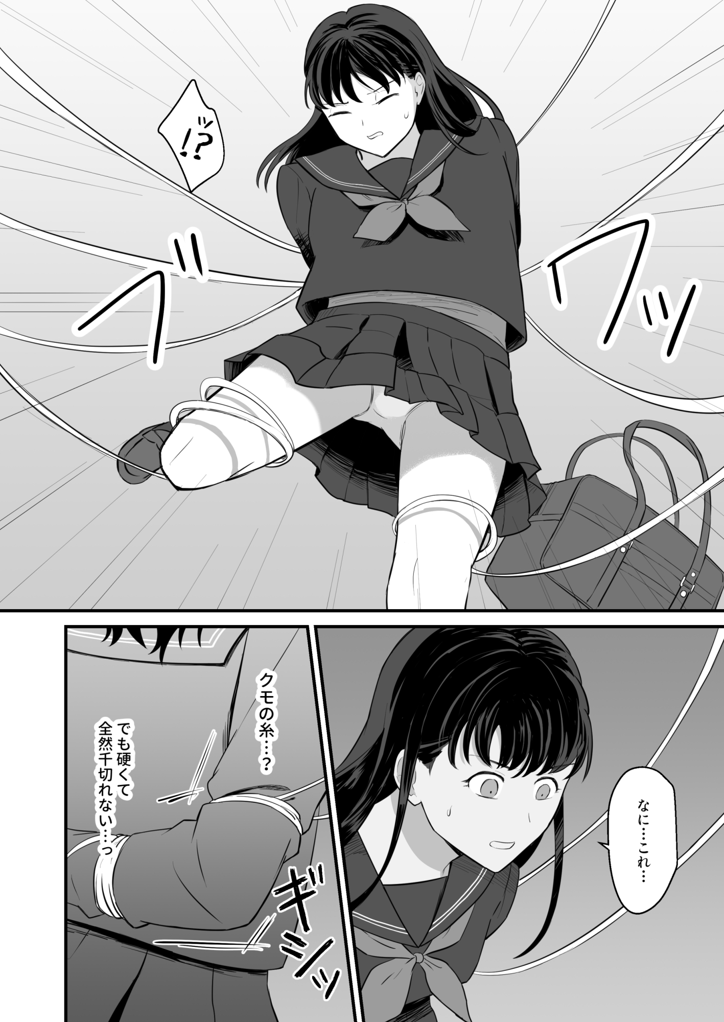 少女は蜘蛛の糸に捕らえられ、蜘蛛から与えられる快楽に悶えるのだった―。