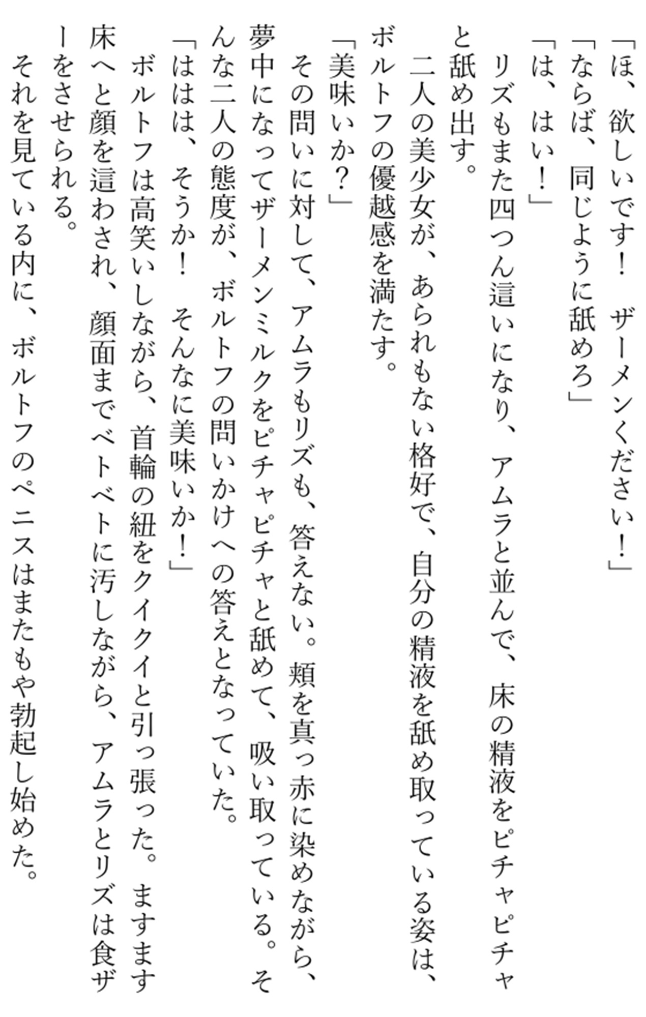| タグ | 女主人公 百合 快楽堕ち しつけ 拘束 複数プレイ/乱交 合意なし ごっくん/食ザー |