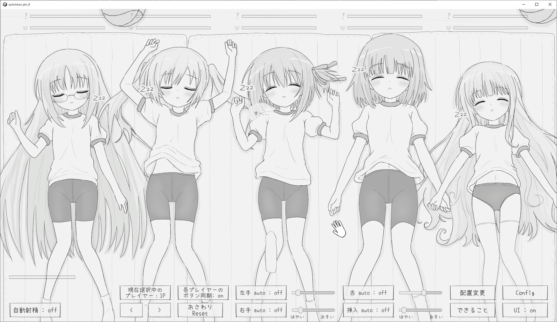 女の子が起きないように、マウス操作で服を脱がせたり挿れたりするゲームです。複数プレイヤーの実装によって、5人同時におさわりができるようになりました。