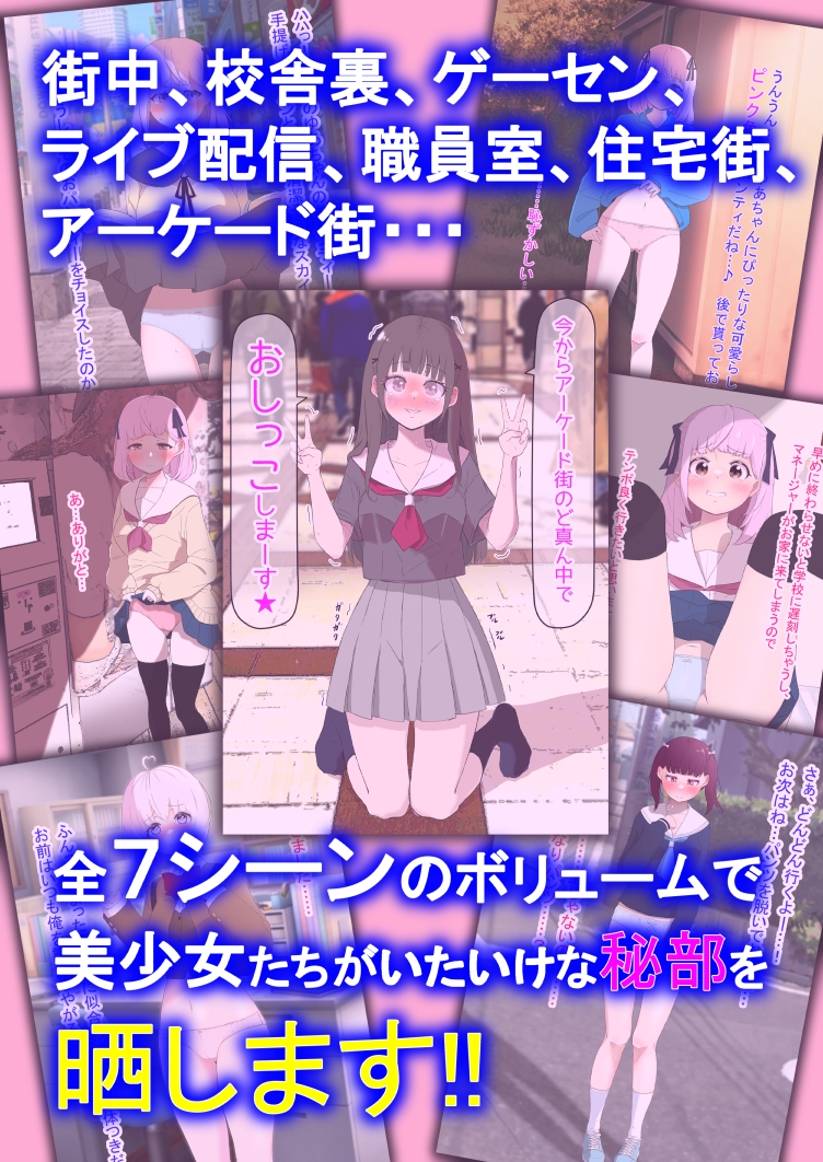 シチュエーションとしてはヒロイン対面形式で、男役が言葉巧みにヒロインを説得し、人目に付く公衆の面前で衣服を徐々に脱がせ、最終的にはいたいけな秘部を晒し上げ、人生終了してしまうような羞恥露出物語を描いています!