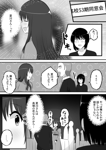 かなわぬ想いを抱きながらも同窓会に顔を出し、かつて片思いしていた女子、夏川未来と再会する。