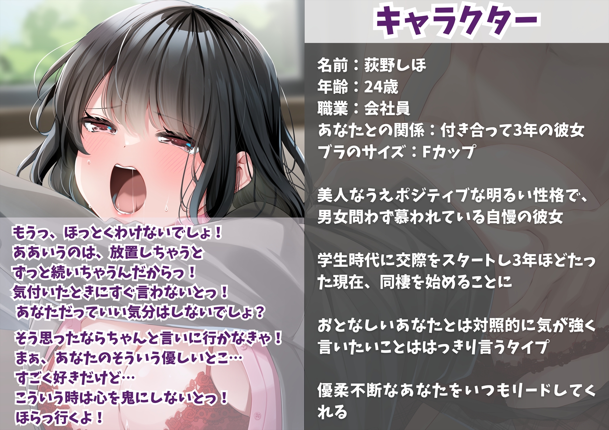 | タグ | バイノーラル/ダミヘ ASMR 寝取られ 寝取り 中出し フェラチオ 潮吹き オホ声 |