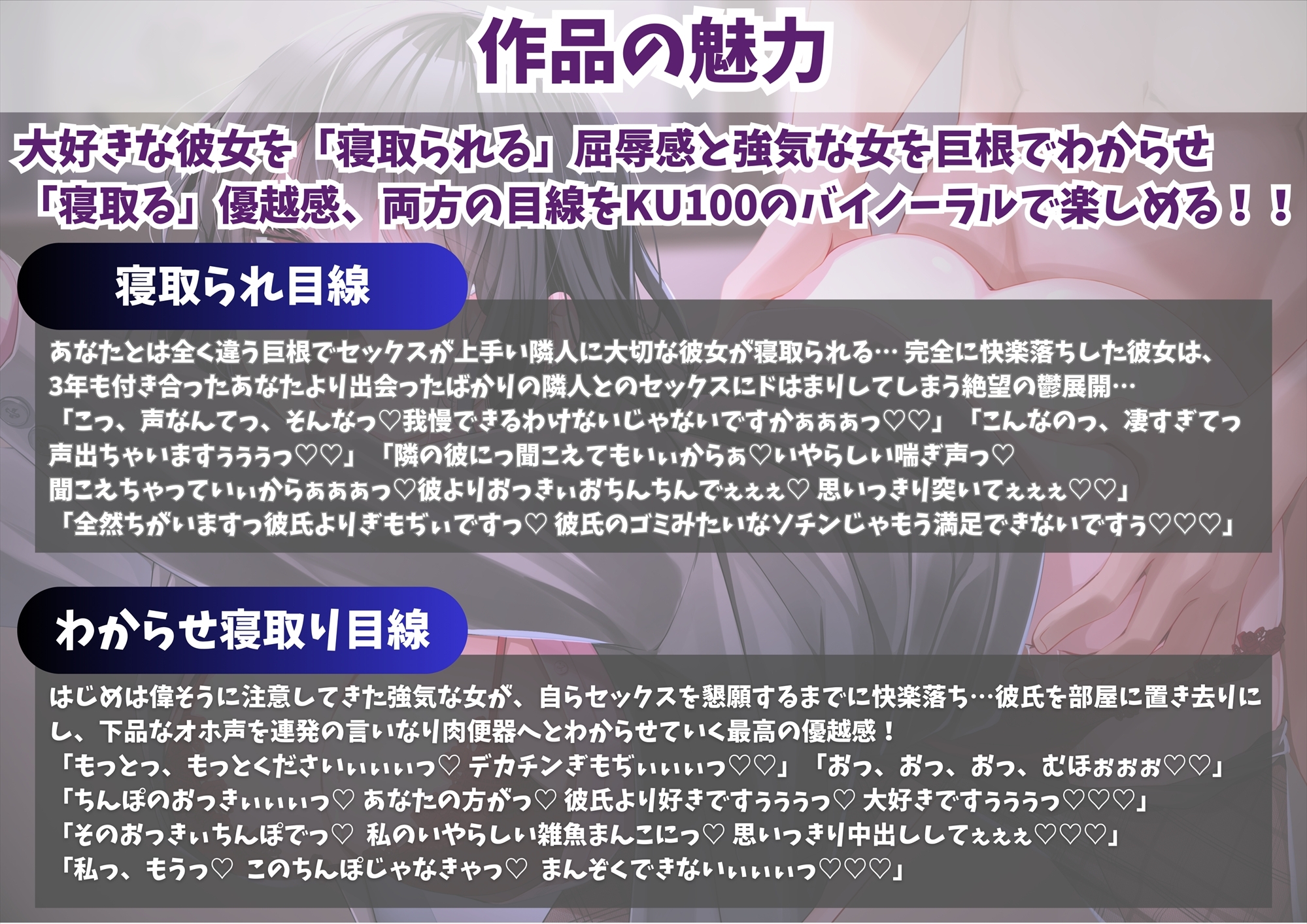 「寝取る」優越感、両方の目線をKU100のバイノーラルで楽しめる!!