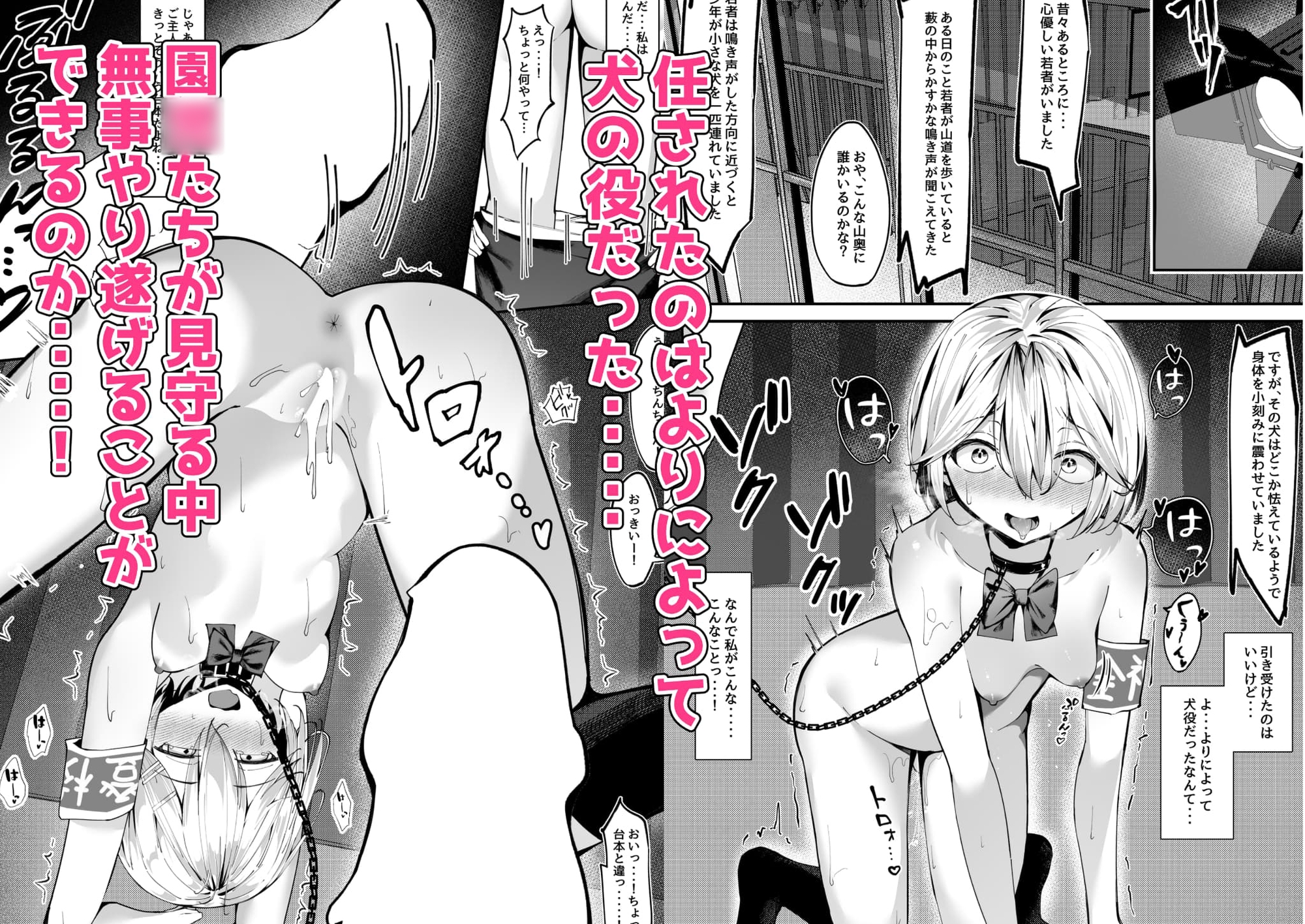 全裸登校係の仕事の一つ奉仕活動にて、演劇部として園○たちの前で全裸で演劇を披露することになったがまさかの犬役で・・・?
