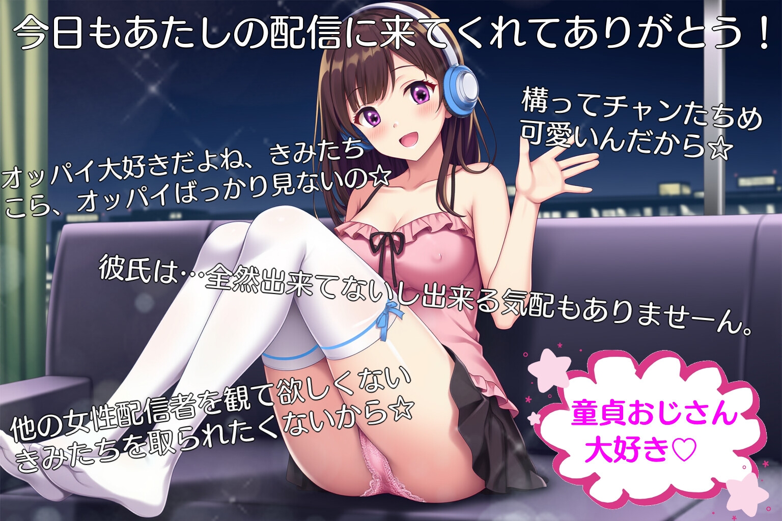 若い女性配信者に夢を見る高齢童貞を題材にしています。