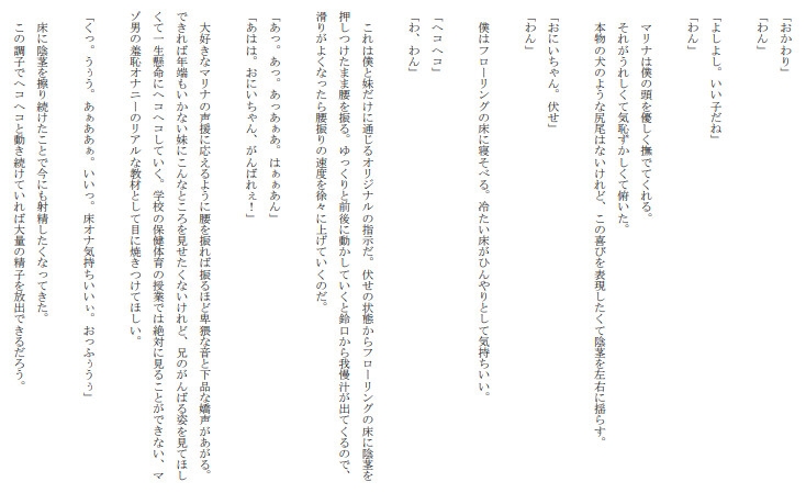 それからふたりの関係は「兄」と「妹」から「マゾペット」と「主人」に変わる。