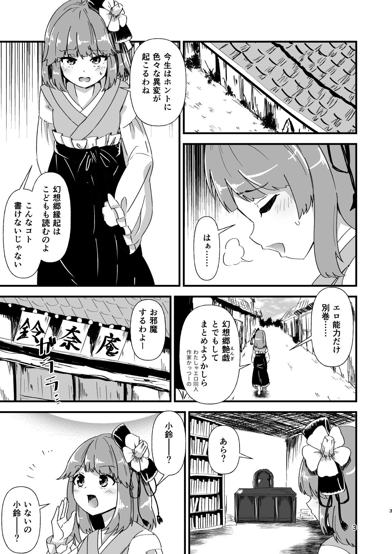 幻想郷縁起に幻想郷エロ能力化異変をどうまとめるべきかを悩んでいた阿求は鈴奈庵を訪ねるが…? 幻想郷エロ能力化異変 第24弾!
