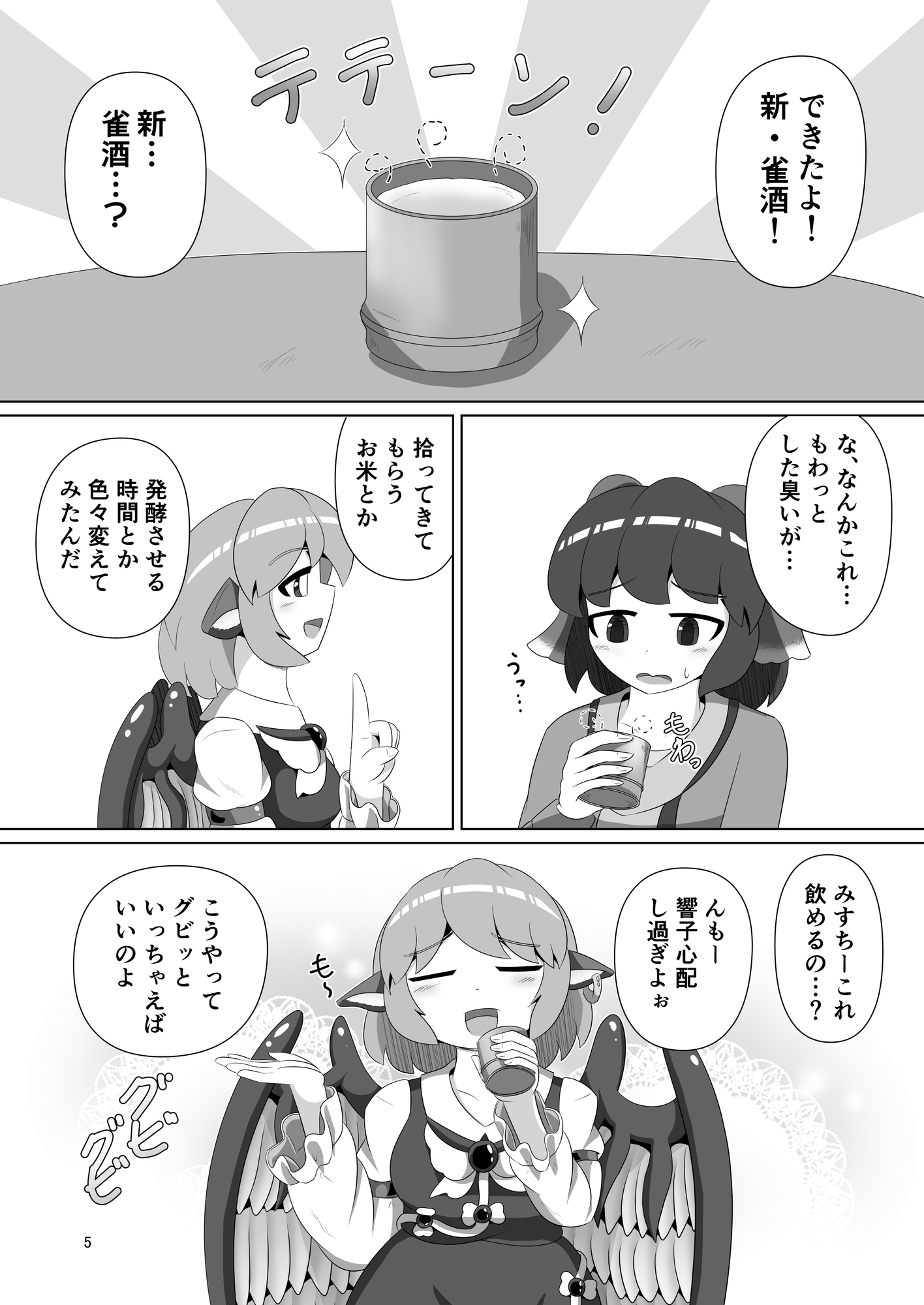 新作の雀酒を造ったミスティアは、試飲した結果、酔い過ぎたのかお酒の効果か、えっちなことをしだしてしまい……