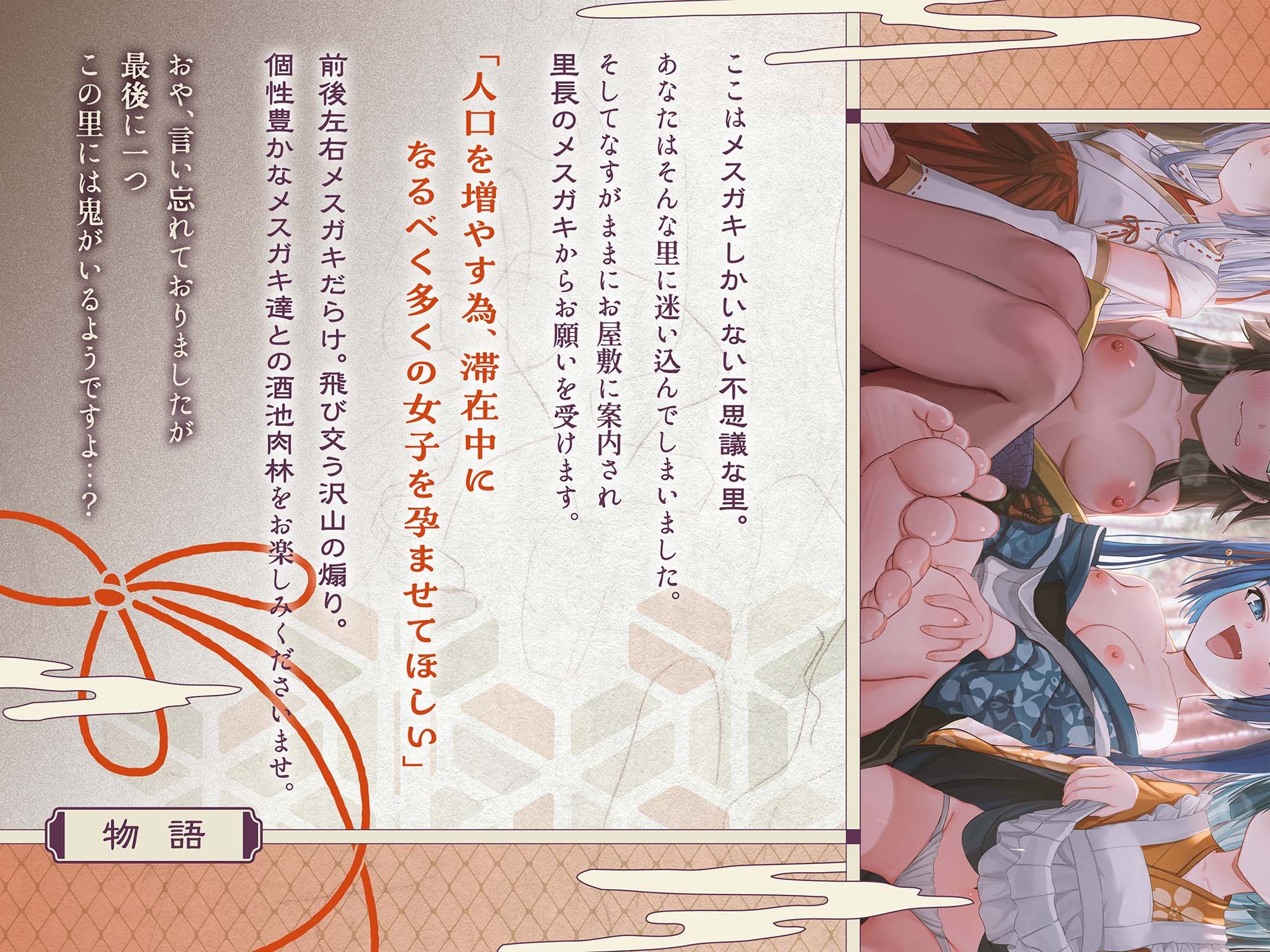 里の未来のためにどこでも中出ししまくりましょう!あなたが迷い込んだのは、メ○ガキしかいない不思議な里。前後左右 煽られながらの酒池肉林をご堪能ください!