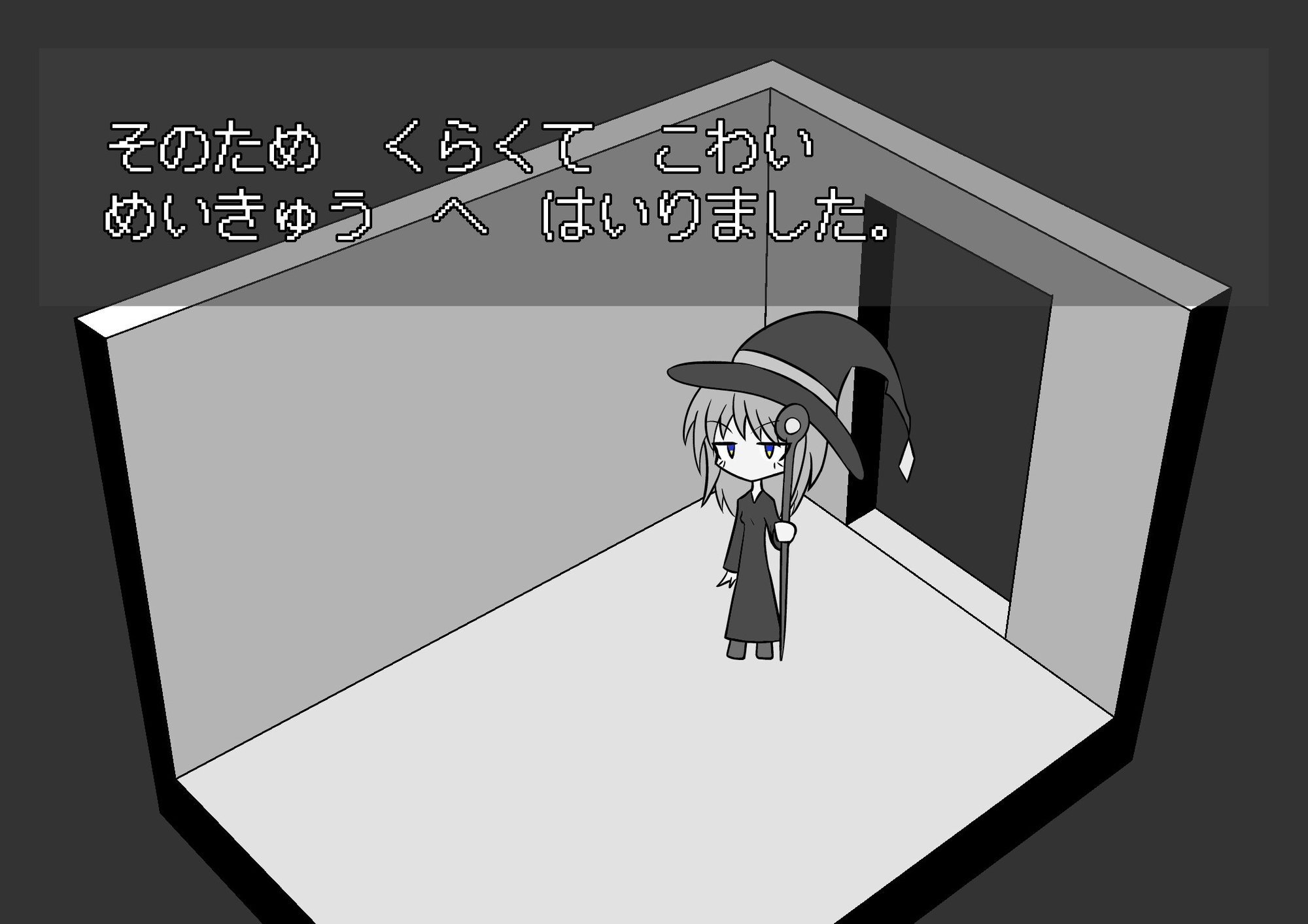 まほうつかいの おんなのこは くらくて こわい めいきゅう へ はいりました。