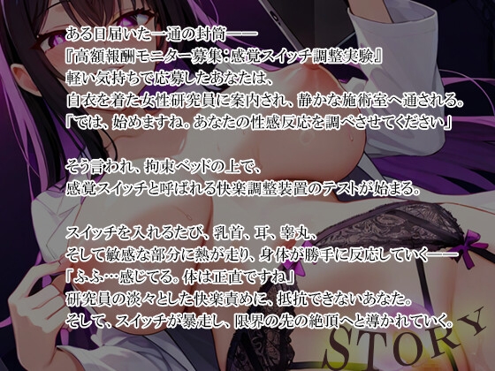 そう言われ、拘束ベッドの上で、感覚スイッチと呼ばれる快楽調整装置のテストが始まる。