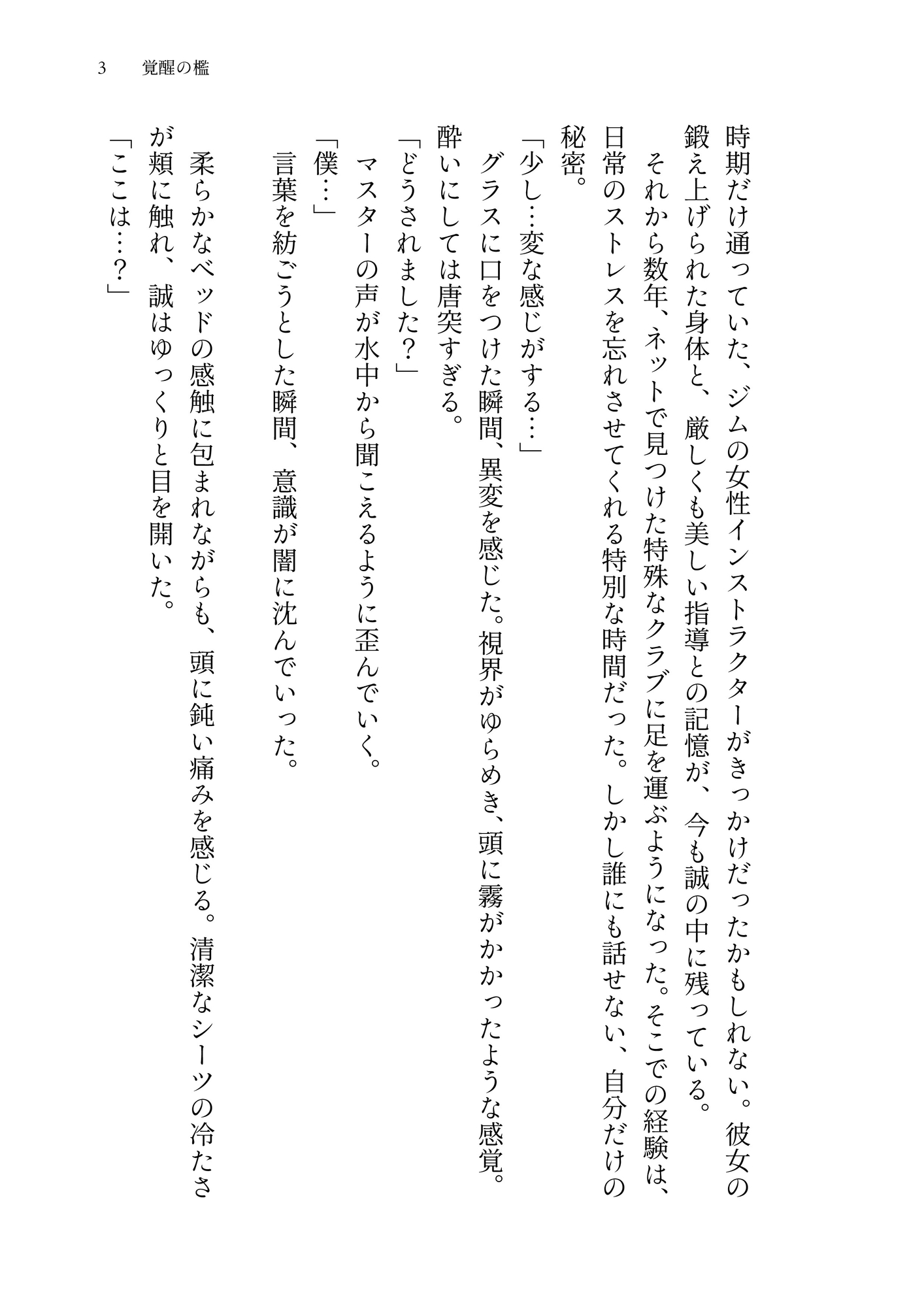 乾いた音とともに、痛みが頭蓋骨を伝わる。まだそれほど強くはない、反応を見るかのような一撃。しかし誠の体は、すでにその痛みを受け入れ、歓迎していた。打たれた頬に熱が集中し、それは痛みなのに、どこか心地よい。