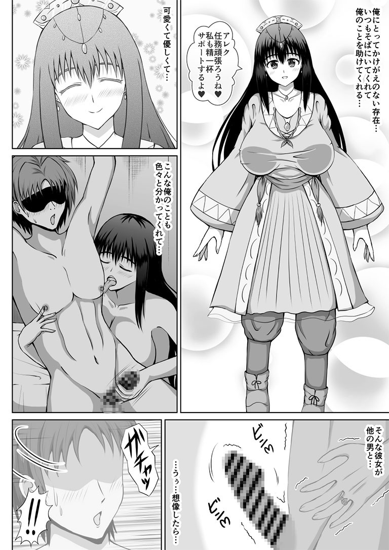 今作は魔法ファンタジー系の世界観で、彼女の無様なNTR(寝取らせ)プレイを見ながらシコる主人公のお話です。