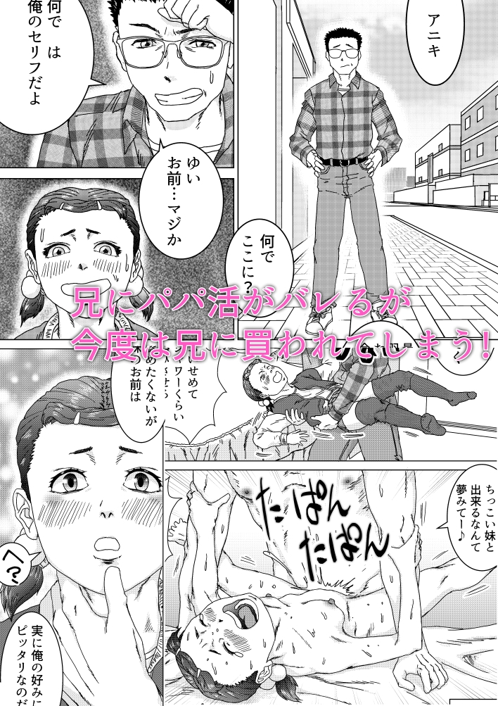 パパ活にハマってぼろ儲けしていたヒロインのゆいは、ある時兄のカズヒロに現場を目撃されてしまう。