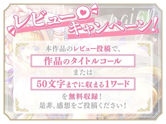 本作品のレビューを投稿をしてくださった方に、「作品のタイトルコール」または「50文字までに収まる1ワード」のどちらかを無料で収録してお送りいたします!