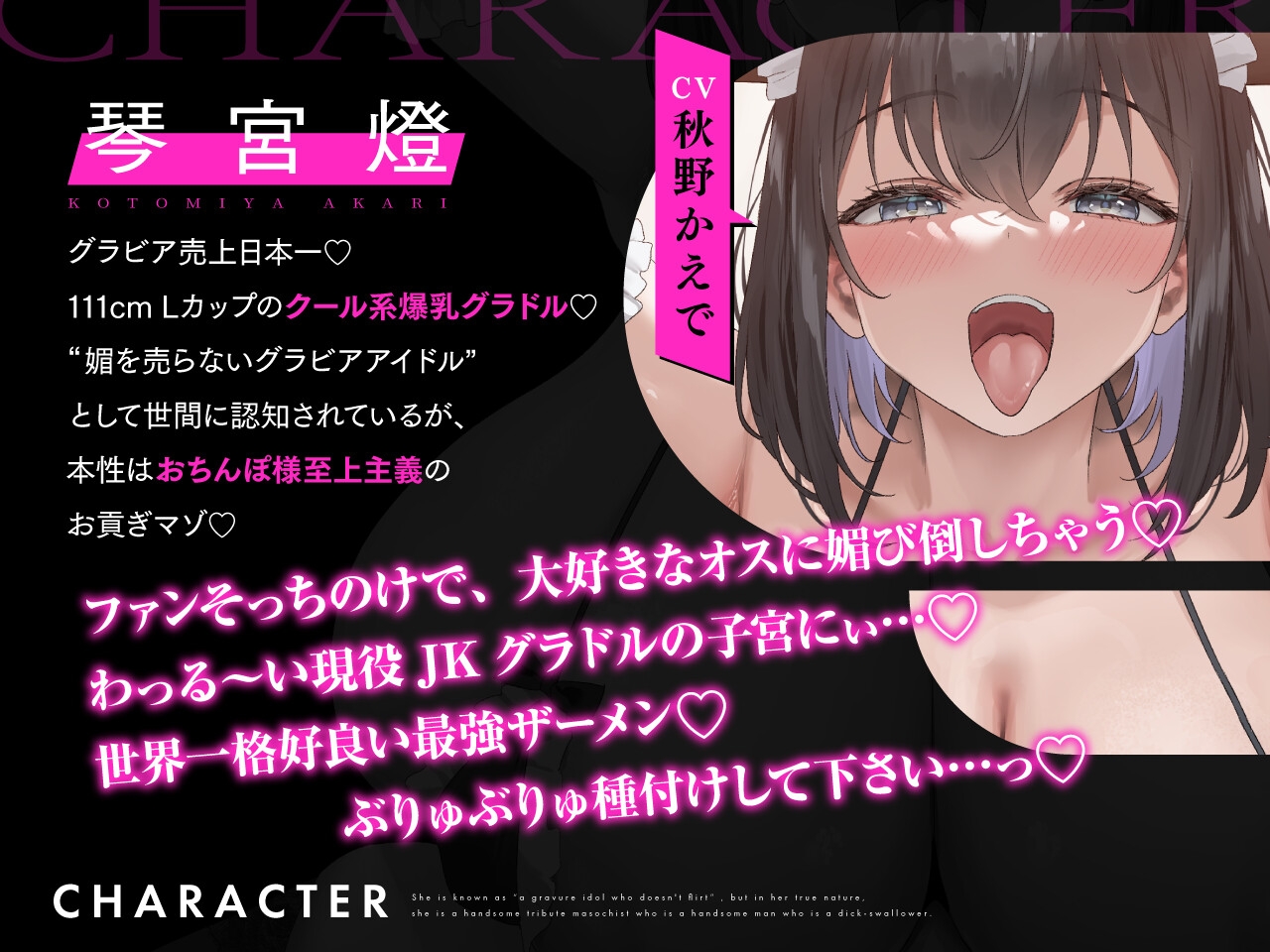 ”クールで媚を売らないグラビアアイドル”、琴宮燈。 その本性は《お貢ぎマゾ》♪ 日本一の爆乳JKグラドルは、あなた専用のチン媚び性処理マゾオナホ♪ CV.秋野かえで様