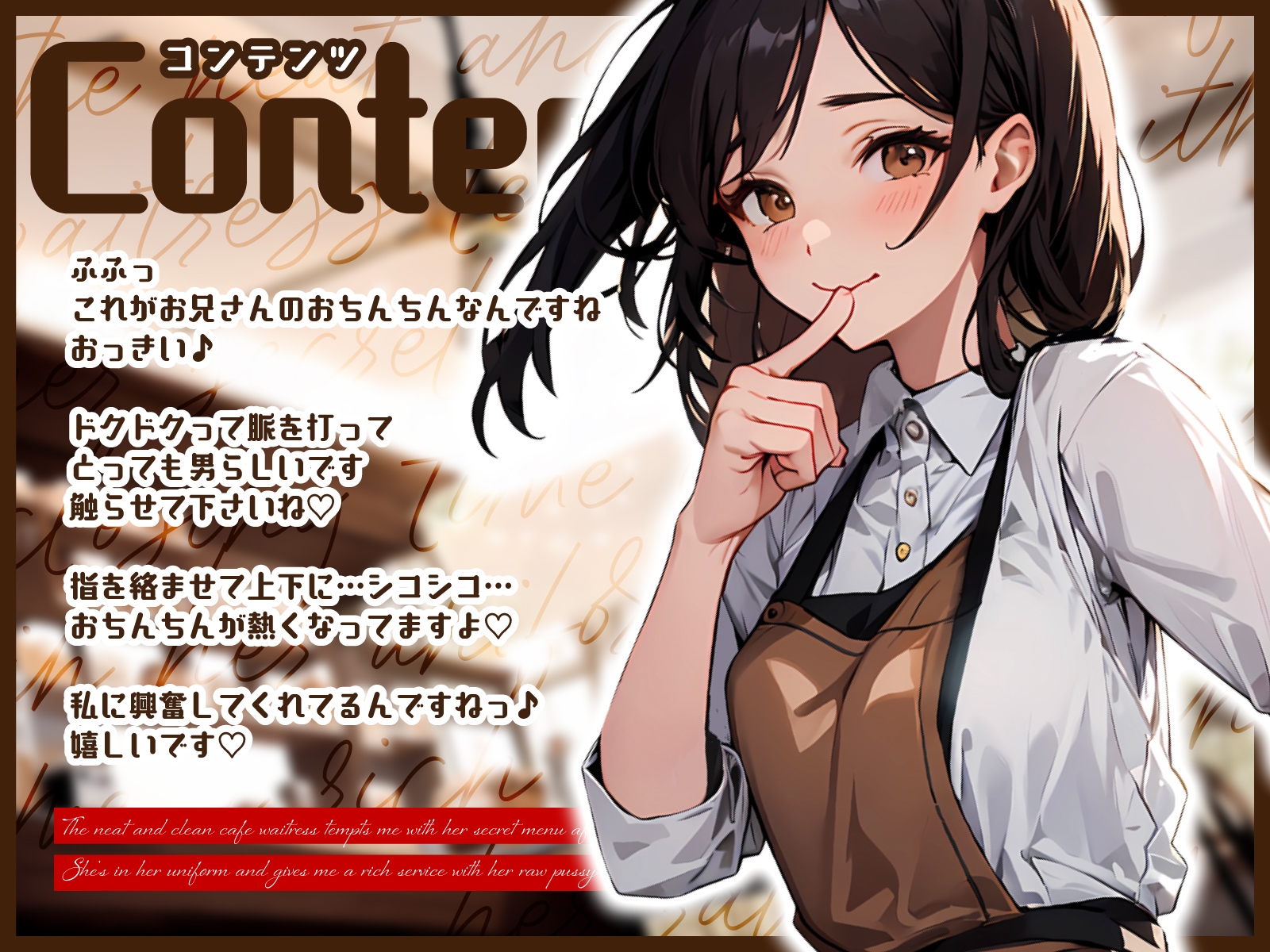 常連のあなたに好意を抱く喫茶店アルバイトの『白石 澄香(しらいし すみか)』。退職前の最後の夜、誰もいない店内で「ずっと好きだった」と告白し、下着を見せながらキスを重ねてくる――思い出に残る甘く刺激的な一夜が始まる。