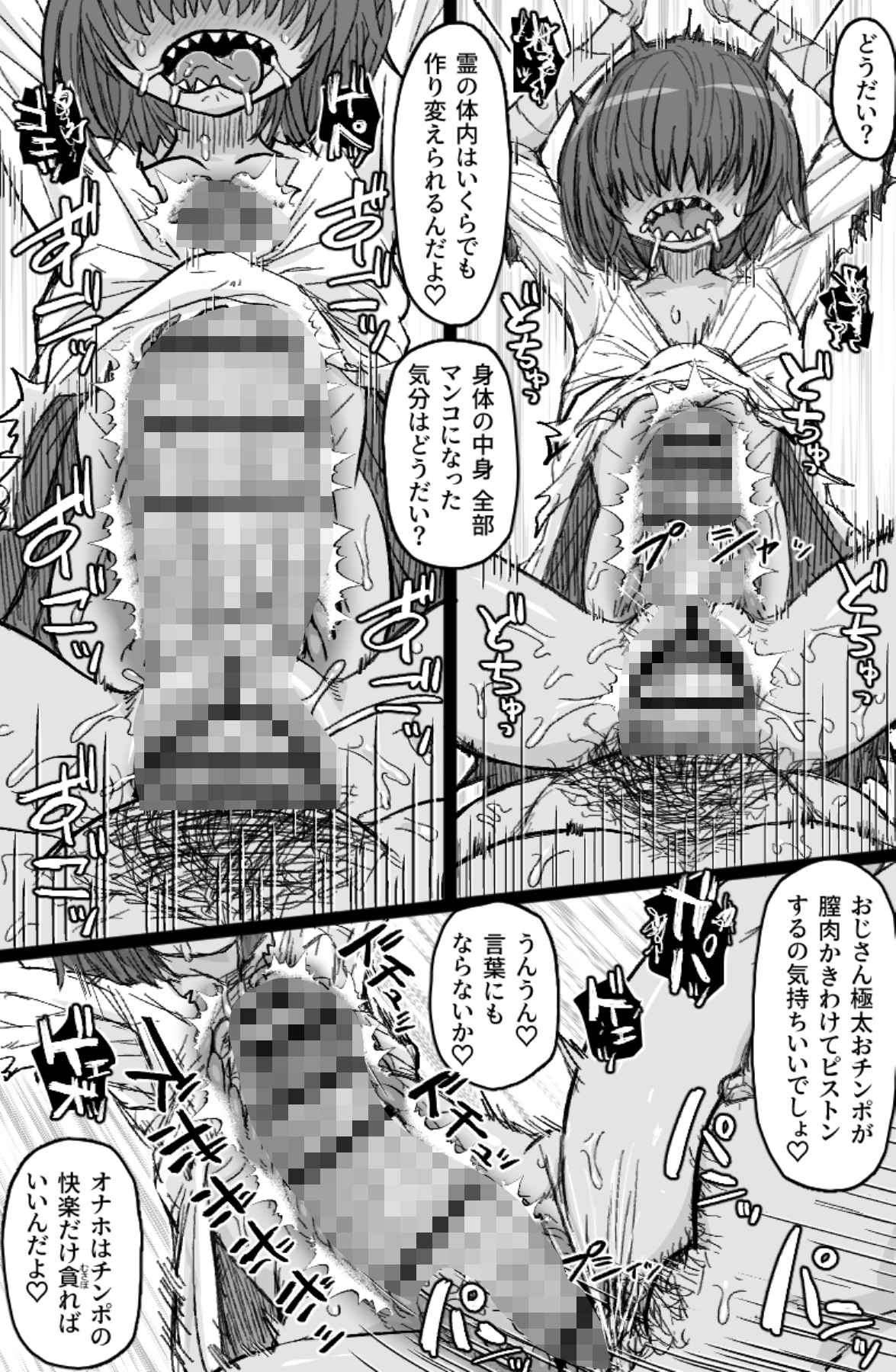ホテルの廃墟に巣食い、数多の魂を吸い取った悪霊たちを除霊する為に立ち上がった除霊師。圧倒的「陽」の力を持つ彼による「過酷すぎる浄化行為」をお届けします。取り巻きの童女霊をオナホにし、主格のムチムチ女霊を術で縛ったままの両穴完全支配。人間相手ではあり得ない過剰な「おしおき」をお楽しみください。本文34p。