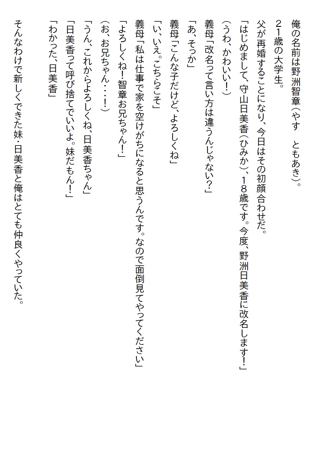 主人公・野洲智章は21歳の大学生の時に父親が再婚し、日美香という義妹ができた。