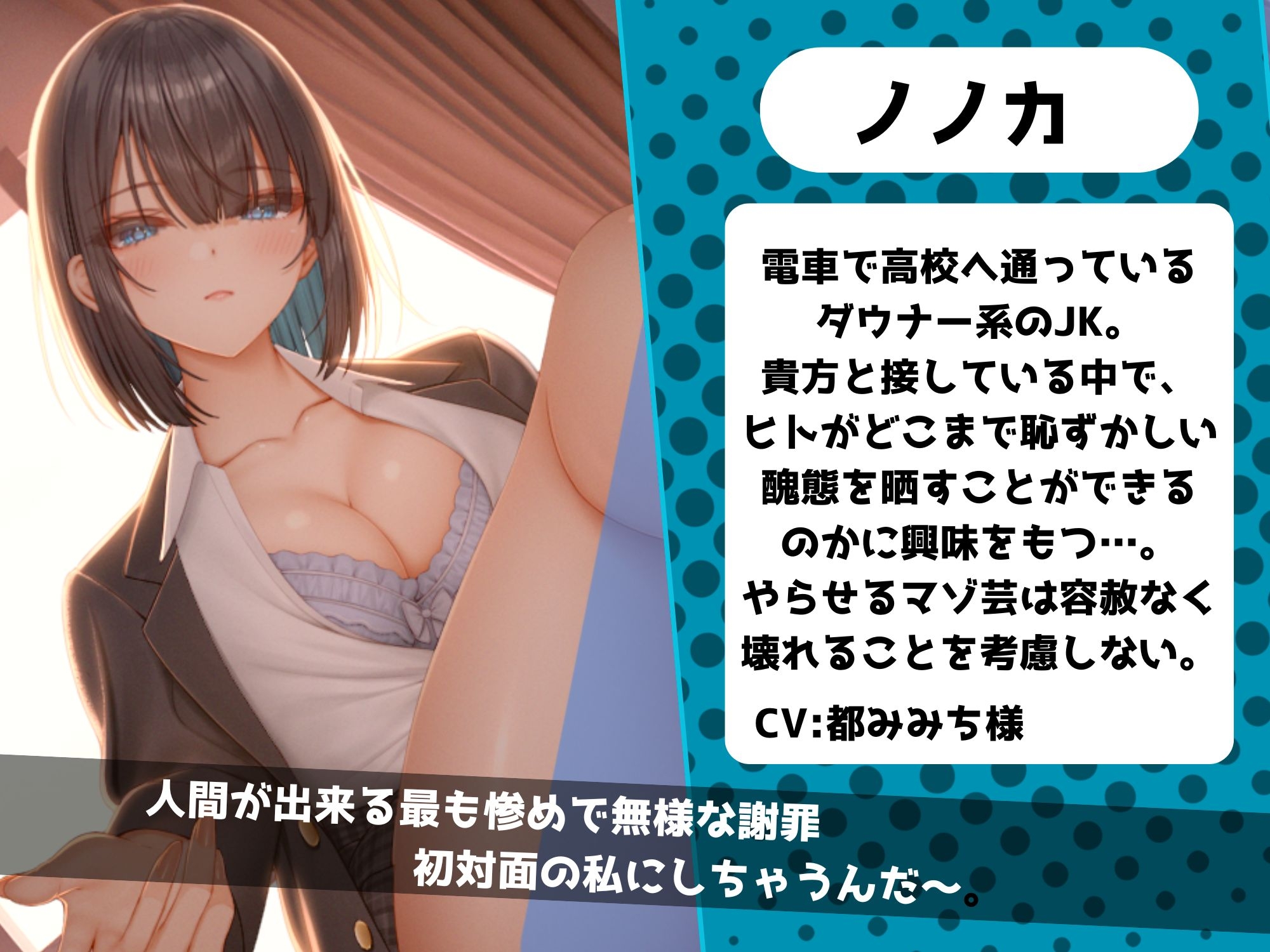ダウナー系のJKに命令されてクッソ恥ずかしくて惨めなマゾ芸を仕込まれる作品です。