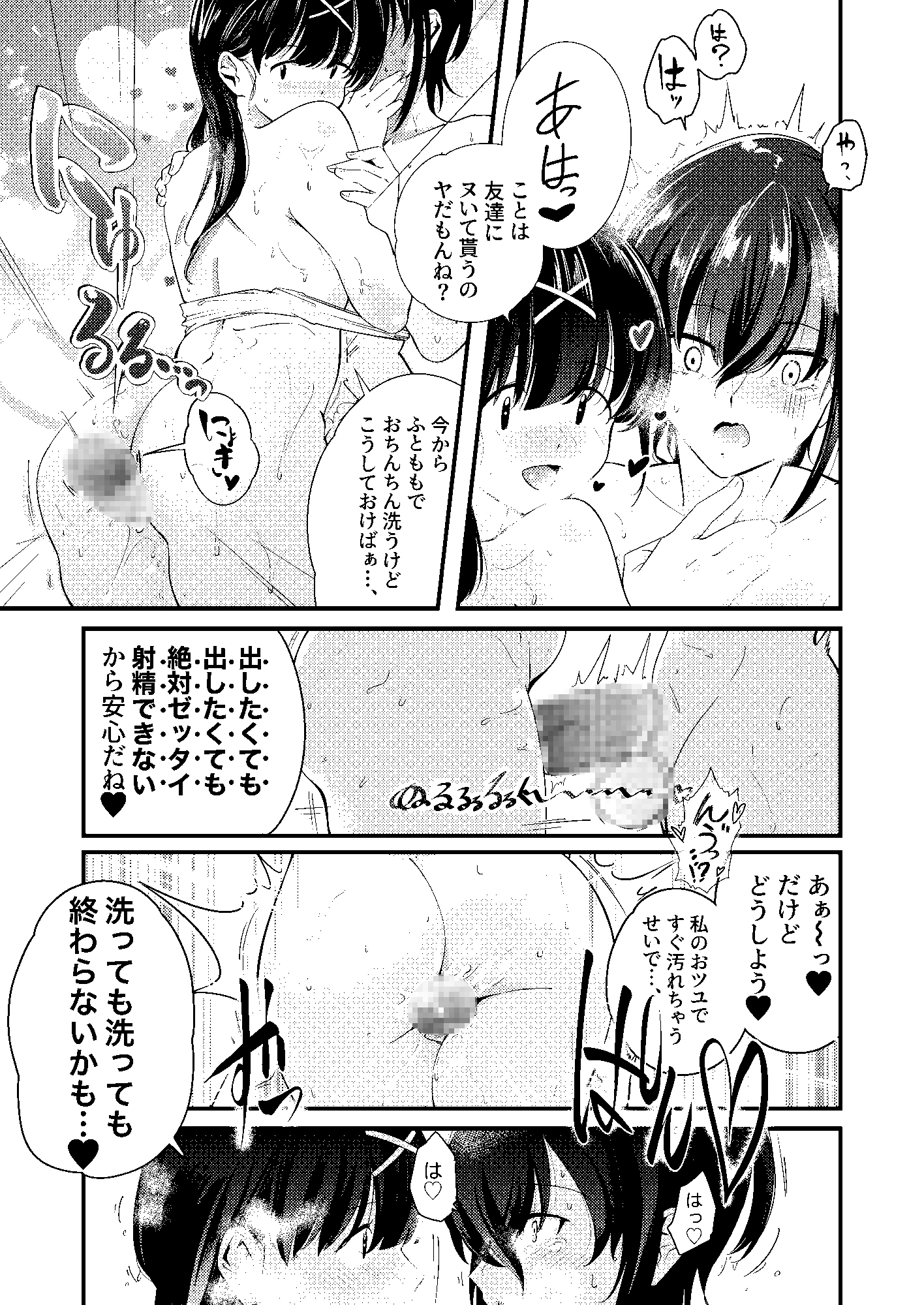 ヘアゴムで根元を縛って射精できなくされたオチンチンをボディソープまみれの太ももの間でしごかれたり。
