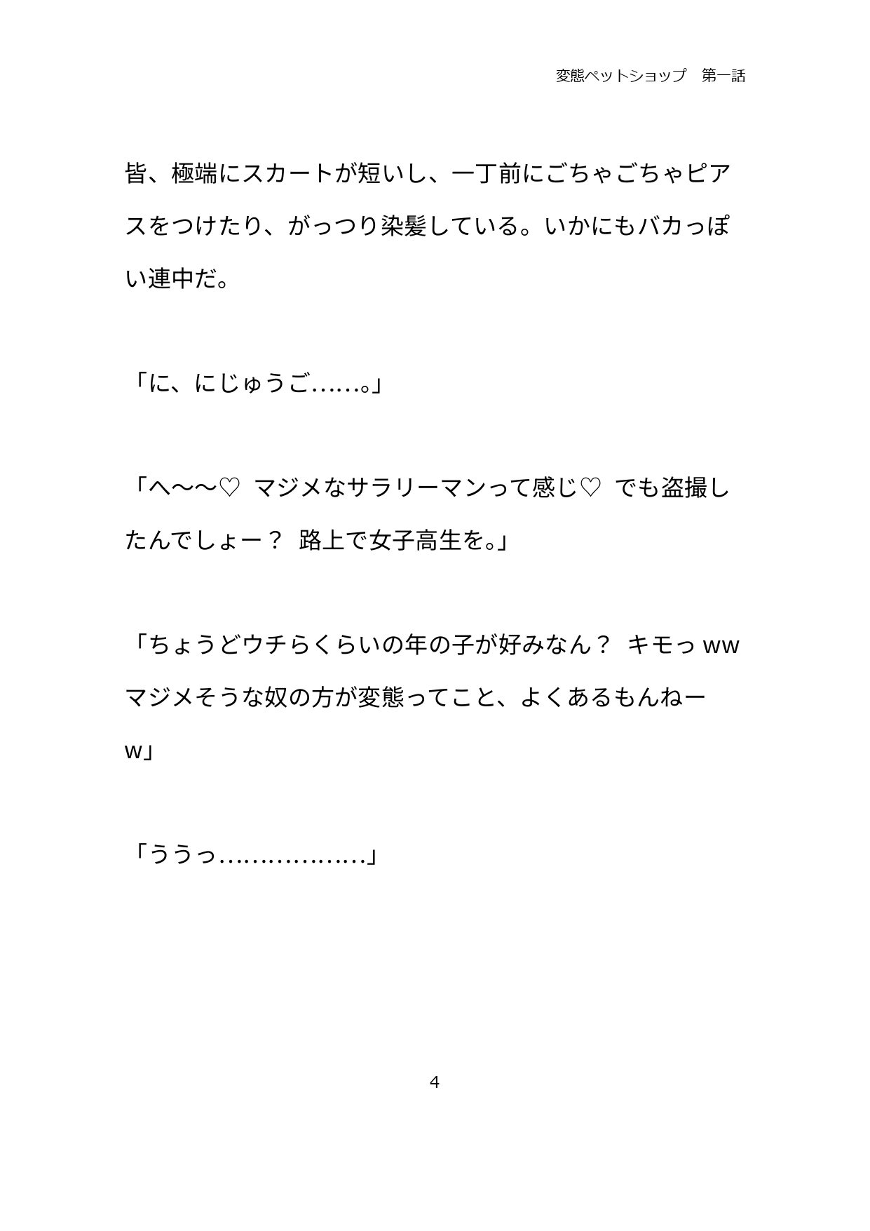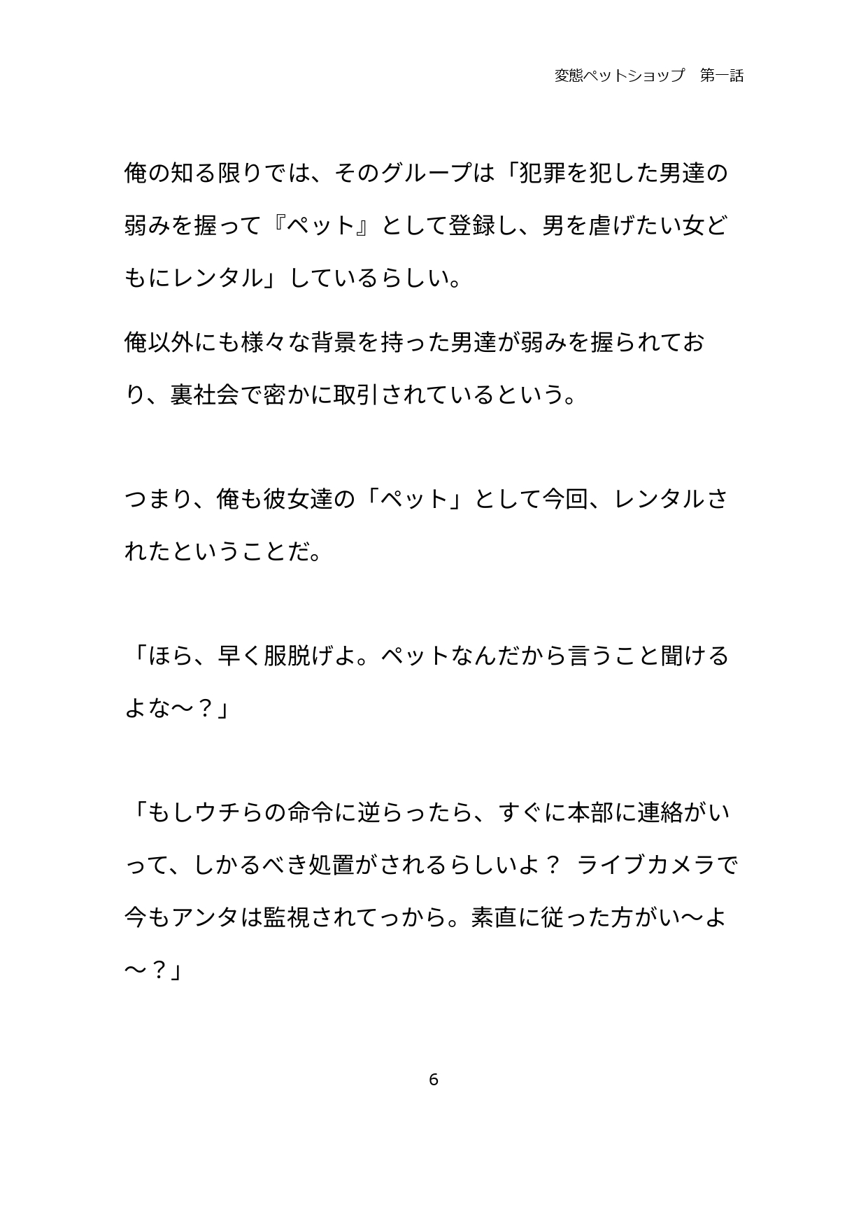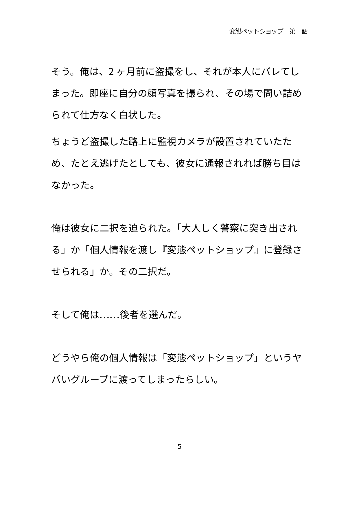 犯罪を犯した男達をリスト化し、「ペット」として会員の女性にレンタルする、アングラなコミュニティ「変態ペットショップ」。